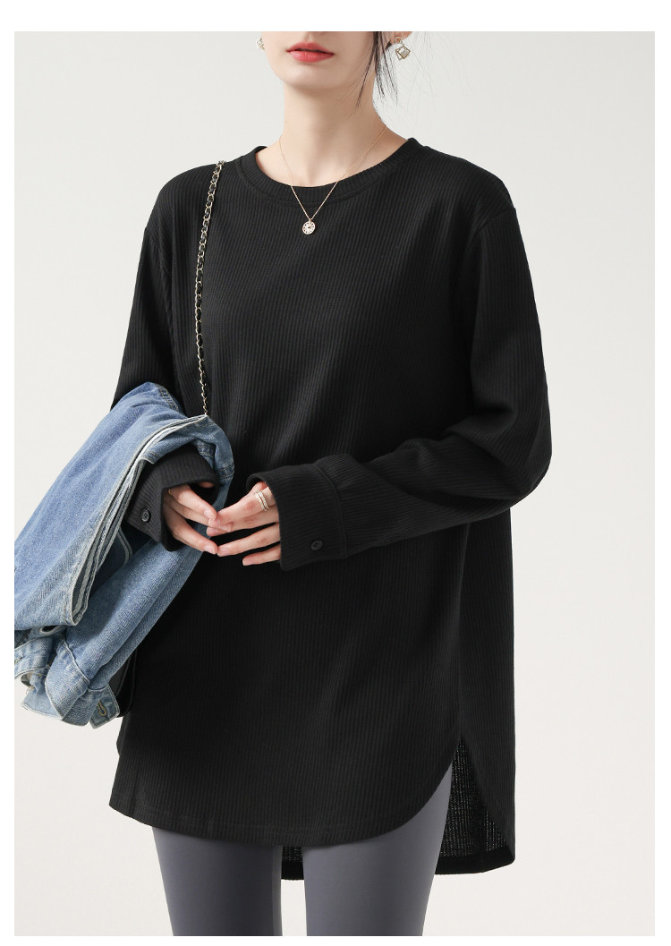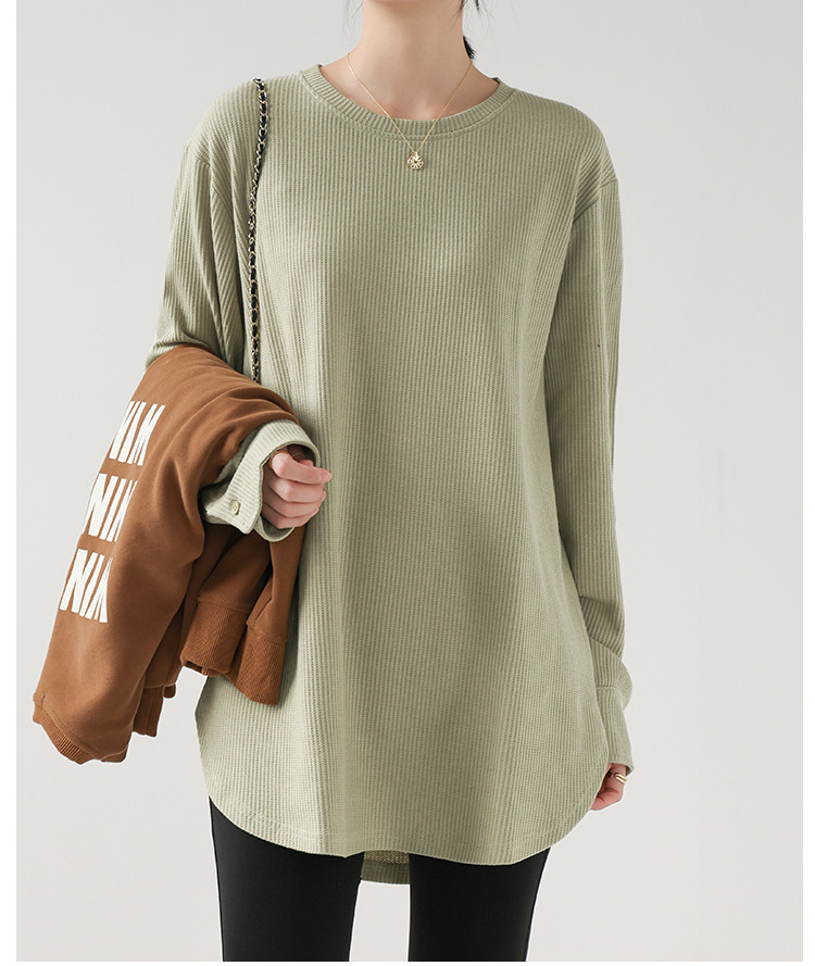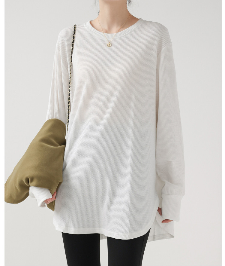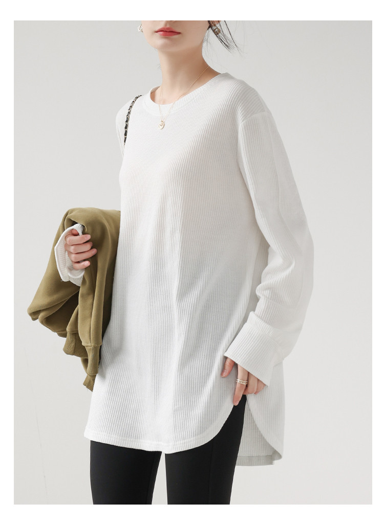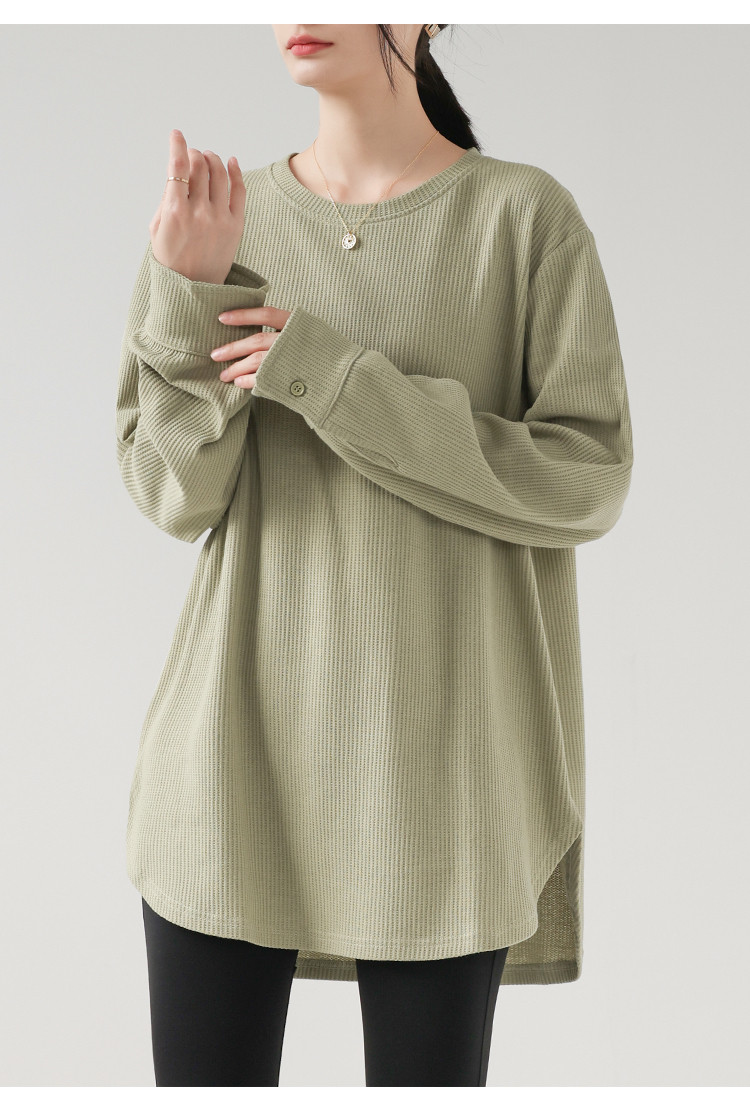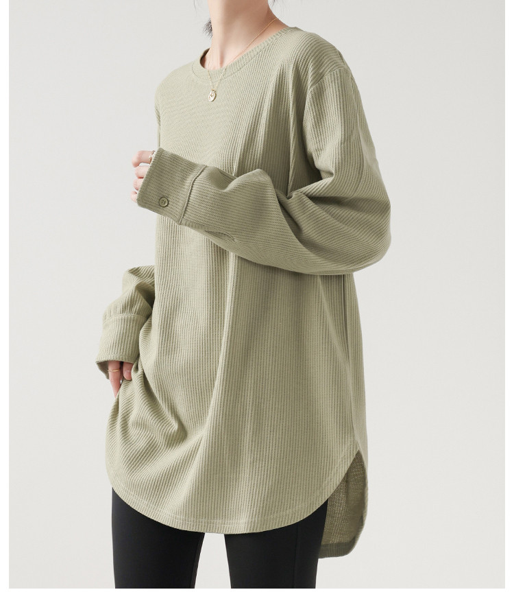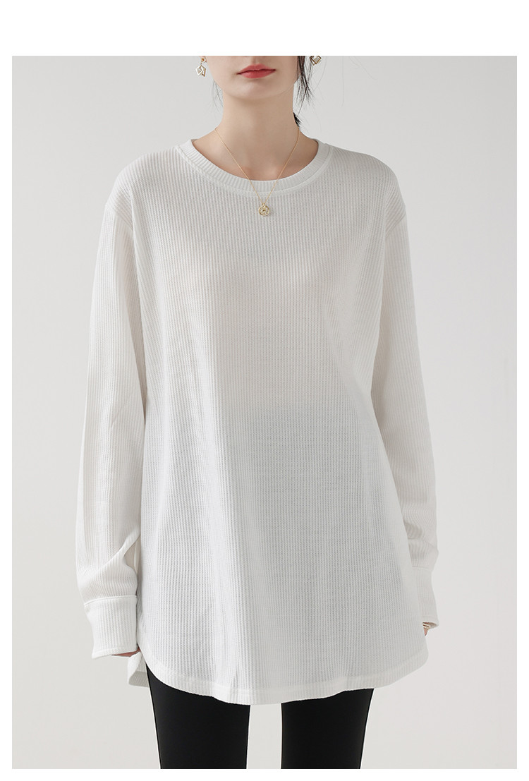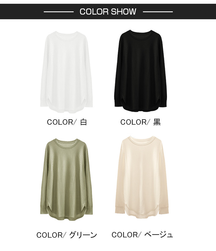 商品名 長袖tシャツ クルーネック ロングTシャツ レディース トップス プルオーバー インナー 体型カバー 綿 Tシャツ ワッフル リラクゼーション効果 重ね着 秋 冬 クールネック 無地 カジュアル オフィス 通勤 ルームウェア