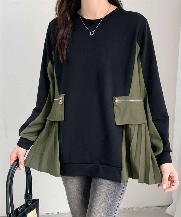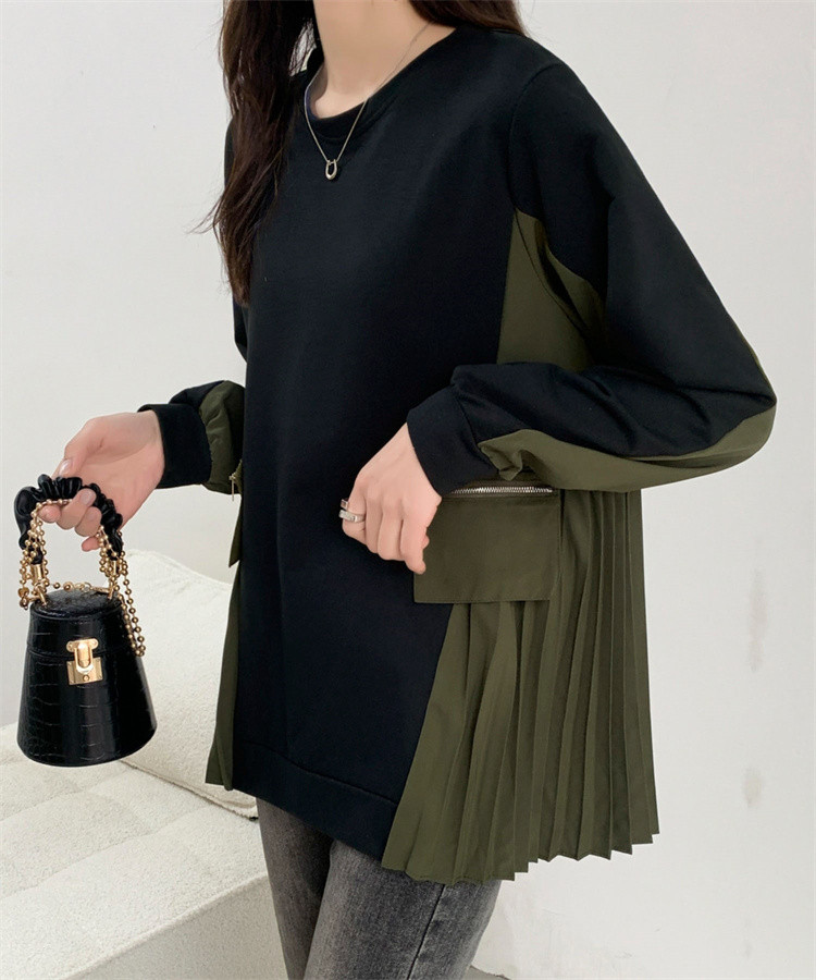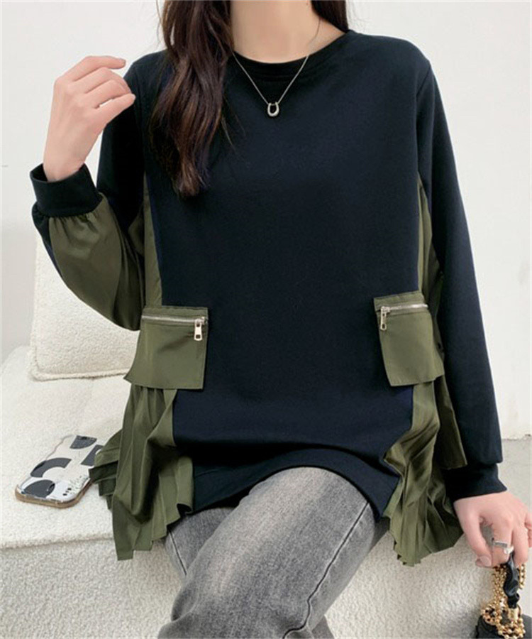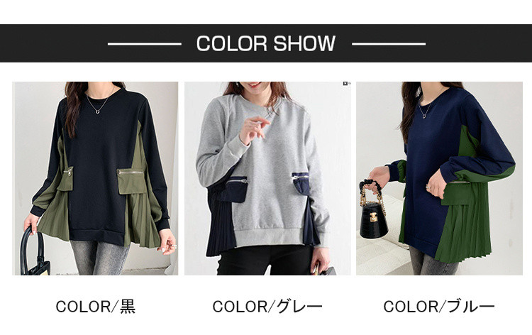 商品名 トレーナー レディース フリーサイズ 切り替え トップス 長袖 重ね着 秋 冬 秋冬 防寒 クルーネック フェイクレイヤード おしゃれ ゆったり ボリューミー 通勤 通学
