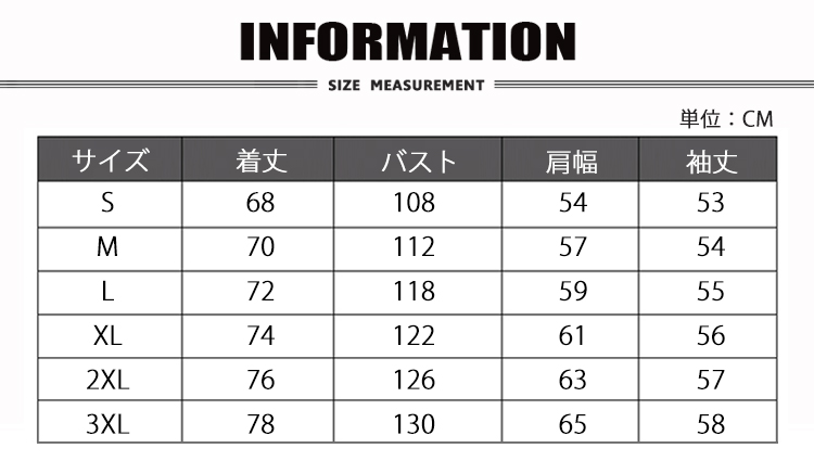 サイズ S|M|L|XL|2XL|3XL