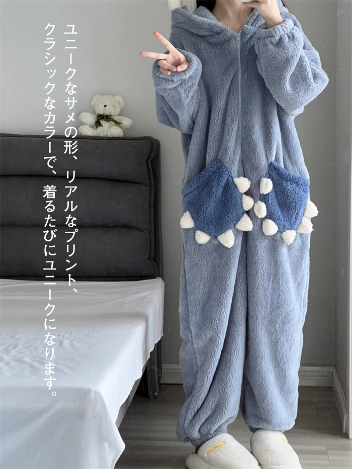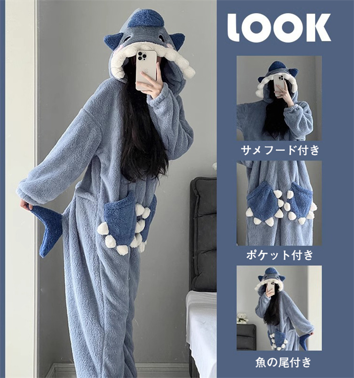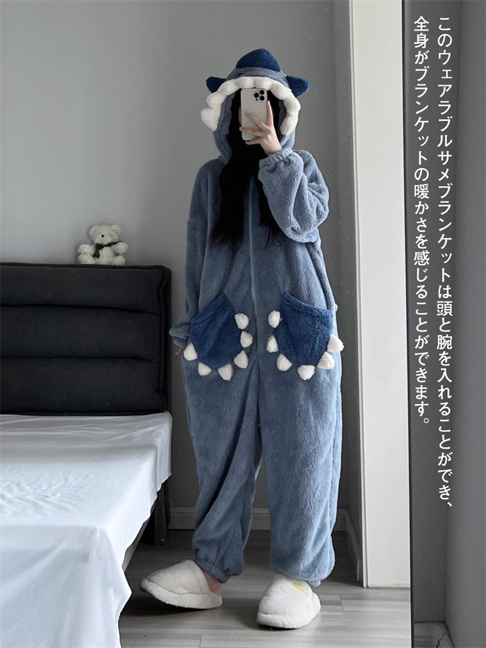 サメ パジャマ サメ 着ぐるみ 大人 もこもこ ルームウェア レディース 可愛い もこもこ パジャマ サメ 寝袋 動物 冬用 秋 寝巻き 部屋着 暖かい サメワンピースブランケット
