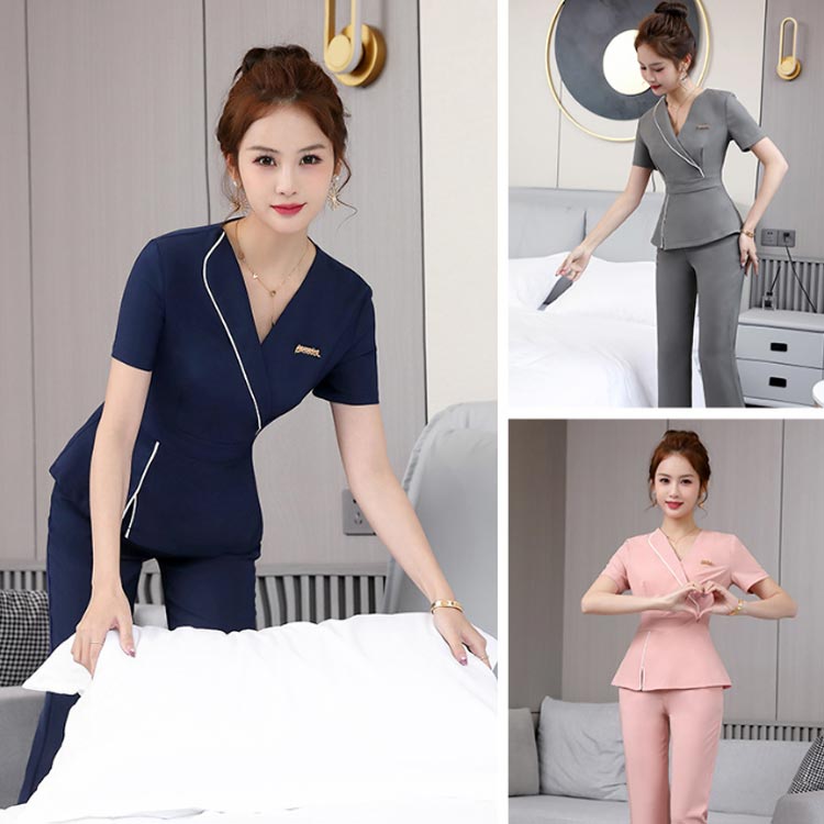 制服 ノーカラー トップス 作業服 ロ