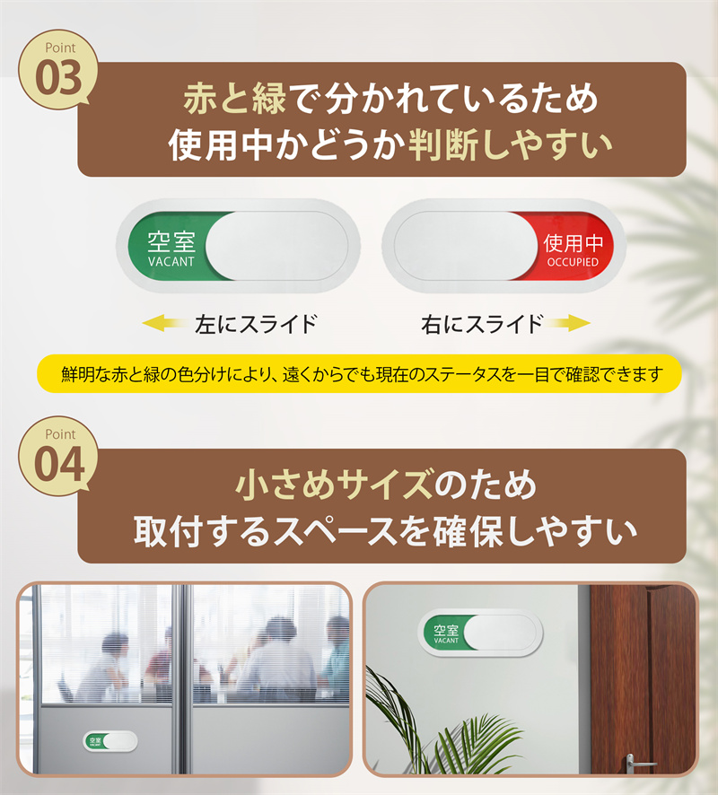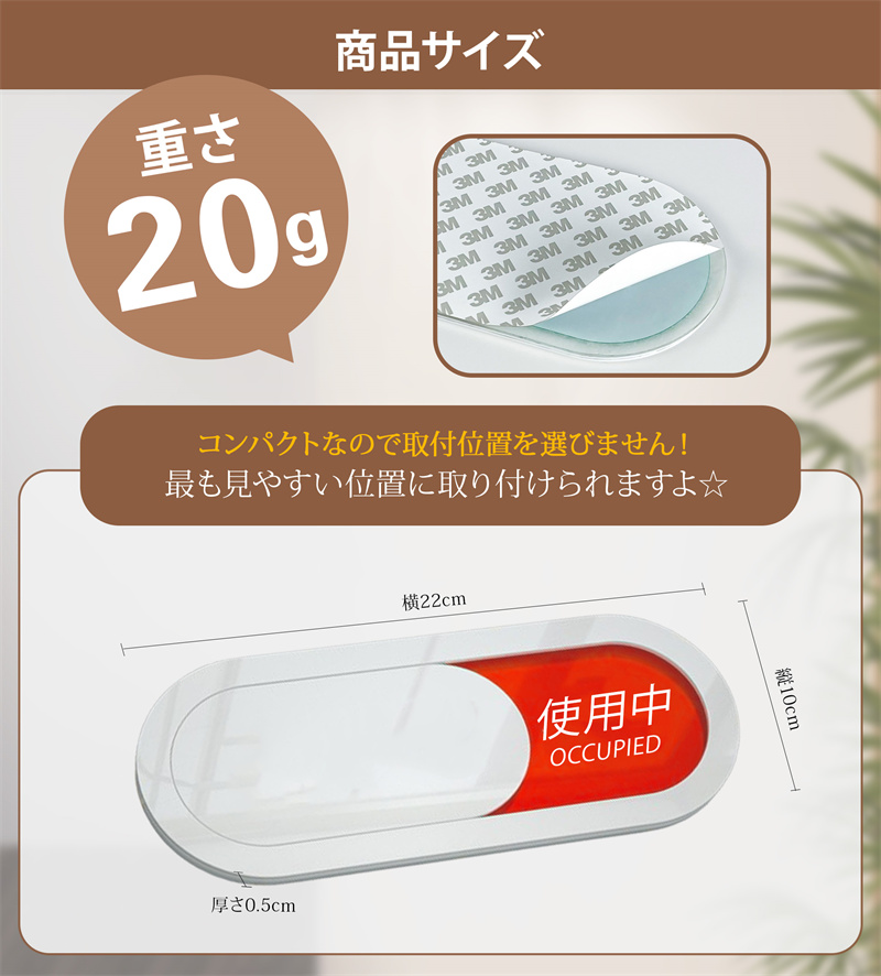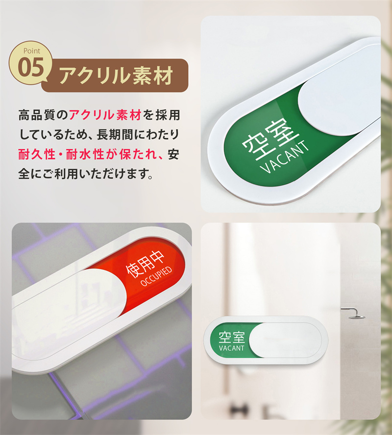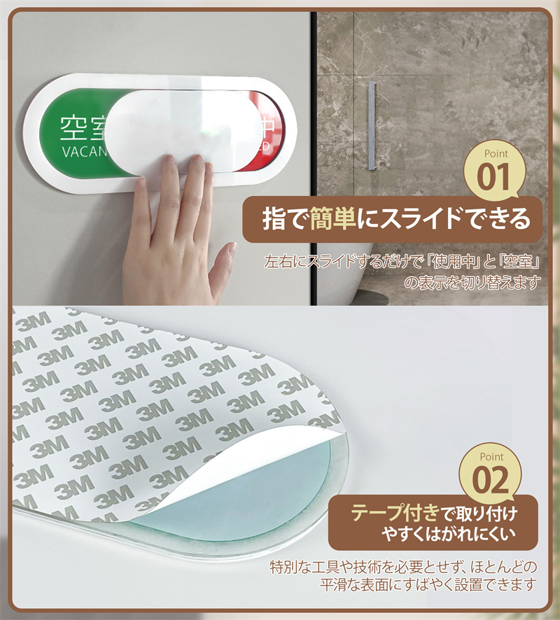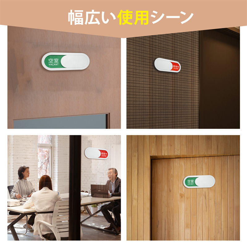 スライド式 サインプレート スライド式 トイレ 更衣室 表示 ドア プレート 使用中 両面粘着テープ付き 会議 来客 空室 設置簡単 事務所