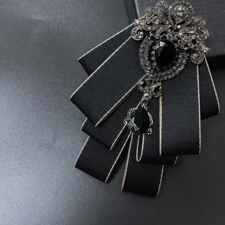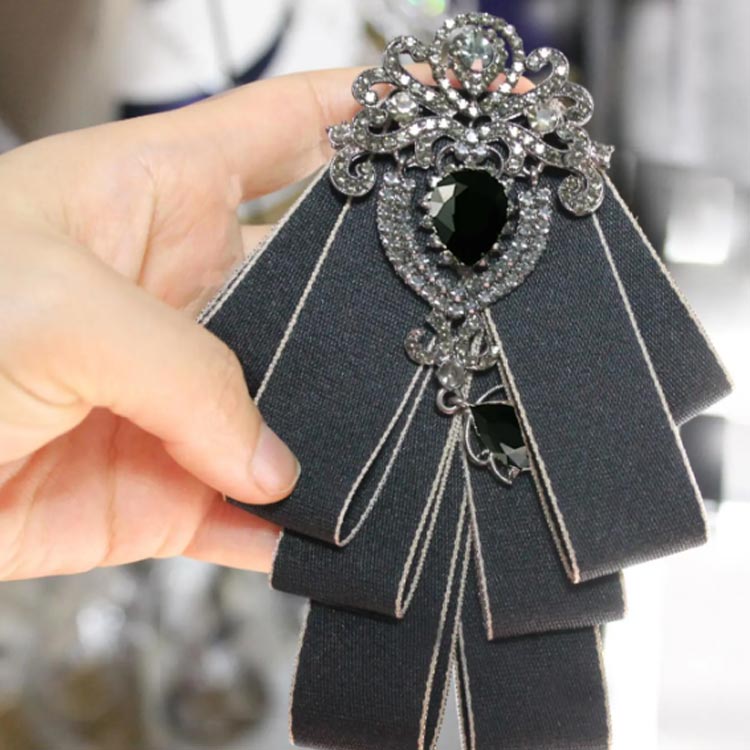 華やかなビジュー付きリボンタイ 男女兼用 ブローチ 蝶結び 普段使い 結婚式 パーティー 発表会 入学式 演奏会 蝶ネクタイ