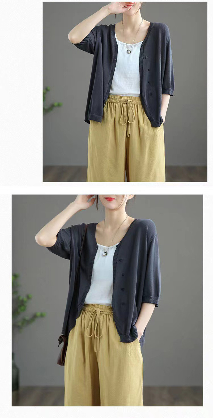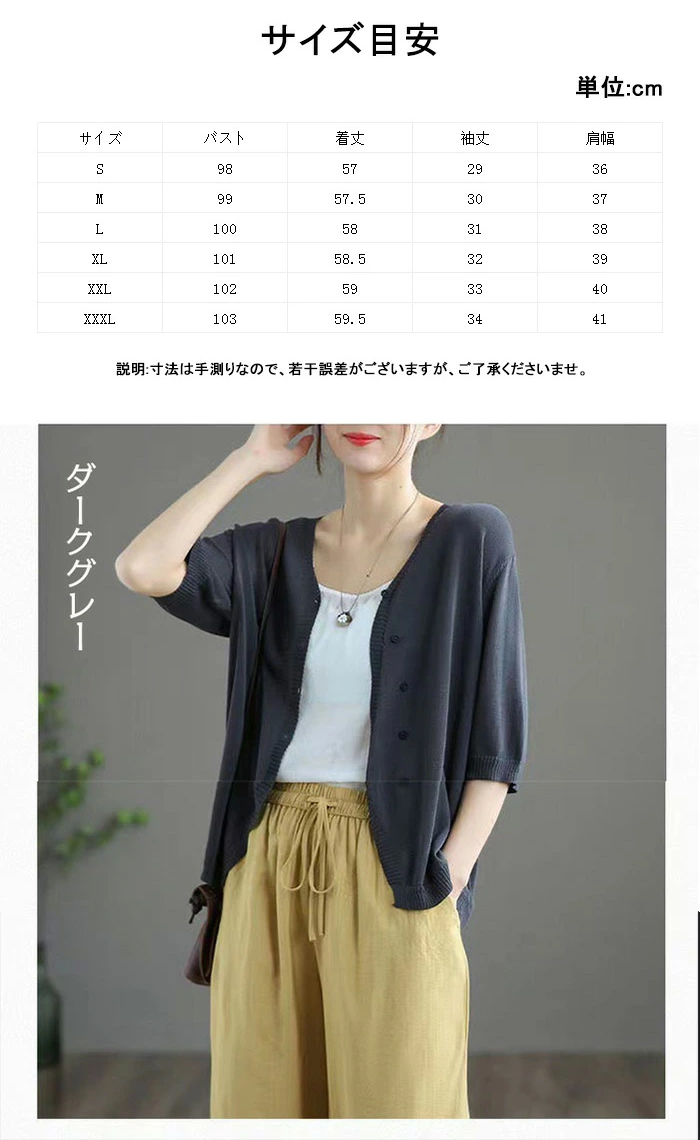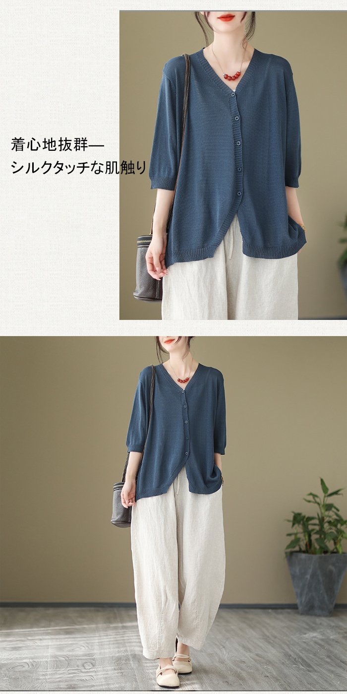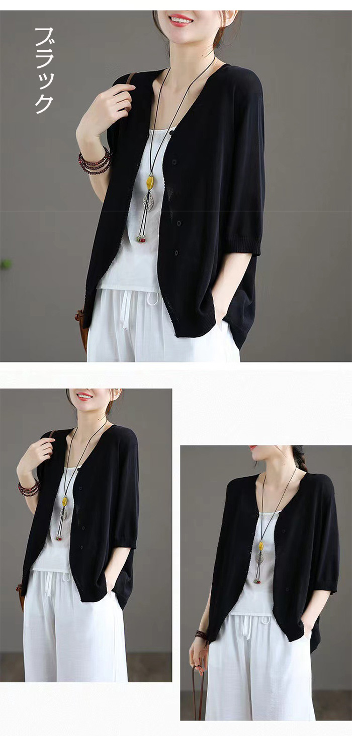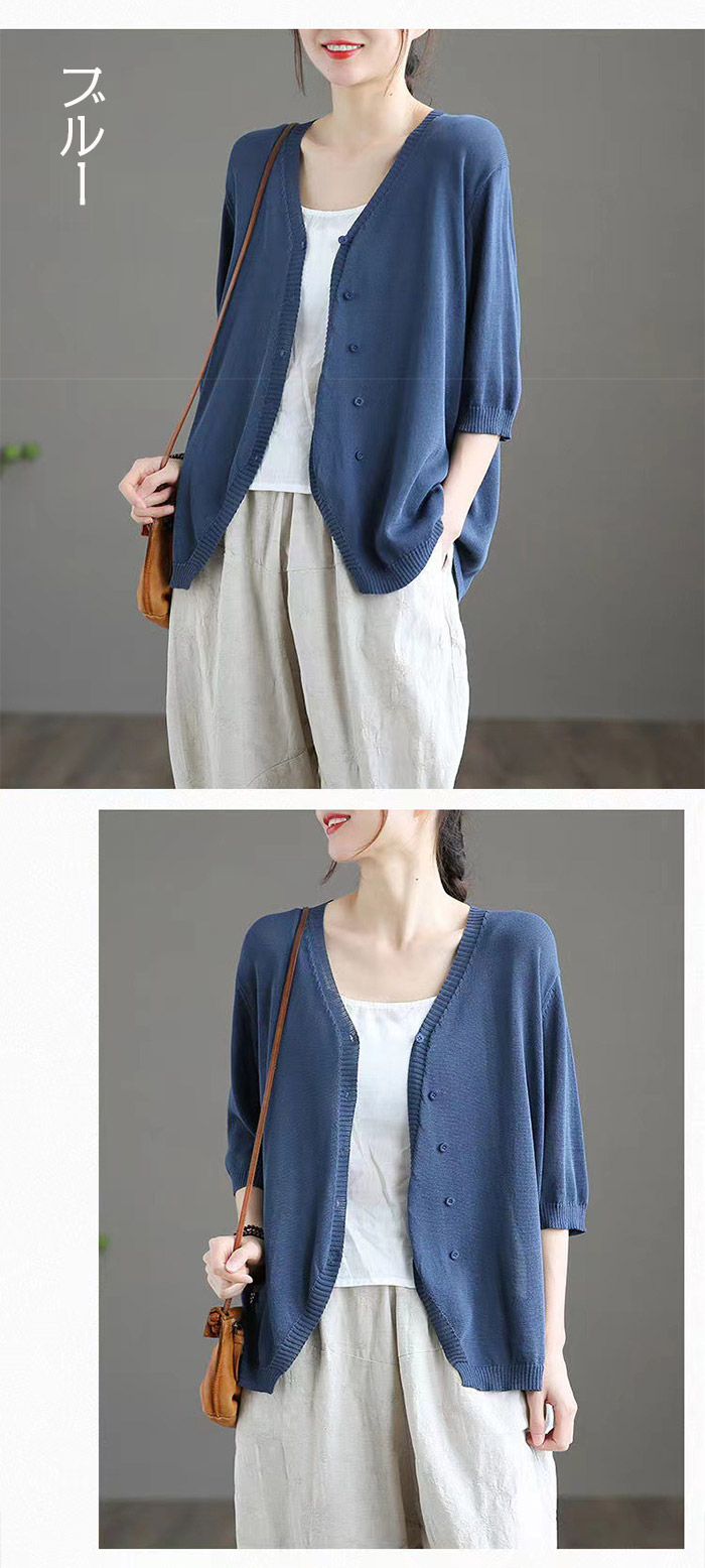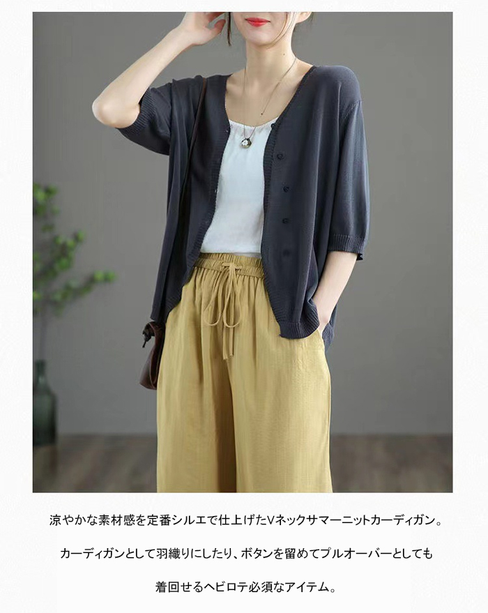 カーディガン レディース 秋 夏 薄手 ニット オフィス UVカット 七分袖 半袖 夏ニット サマーニット 春夏秋 ゆったり トップス 羽織り 冷房対策 カーデ ニットカーディガン vネック 前開き 接触冷感 通勤 紫外線対策 大人可愛い M L XL XXL XXXL