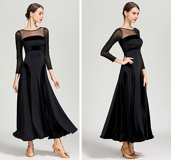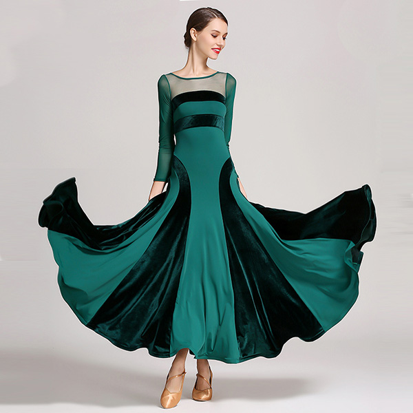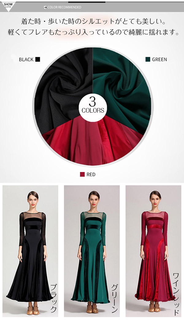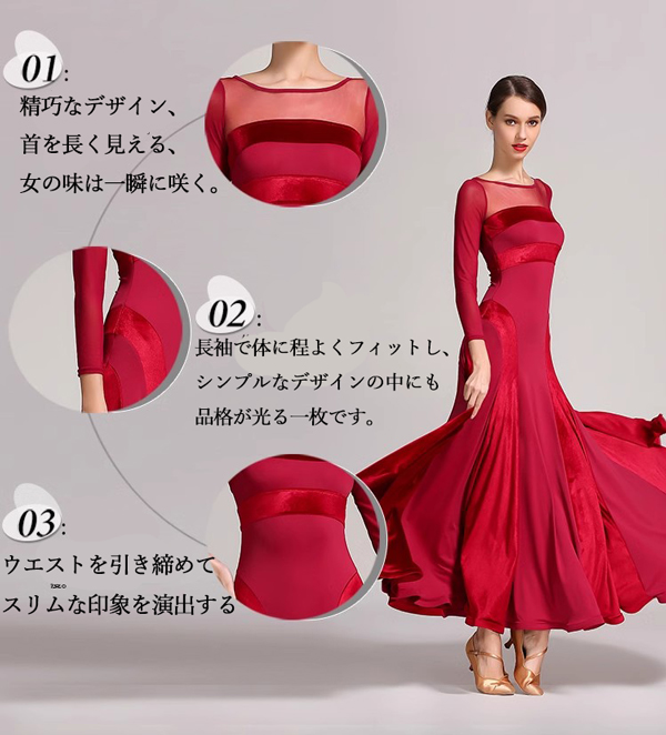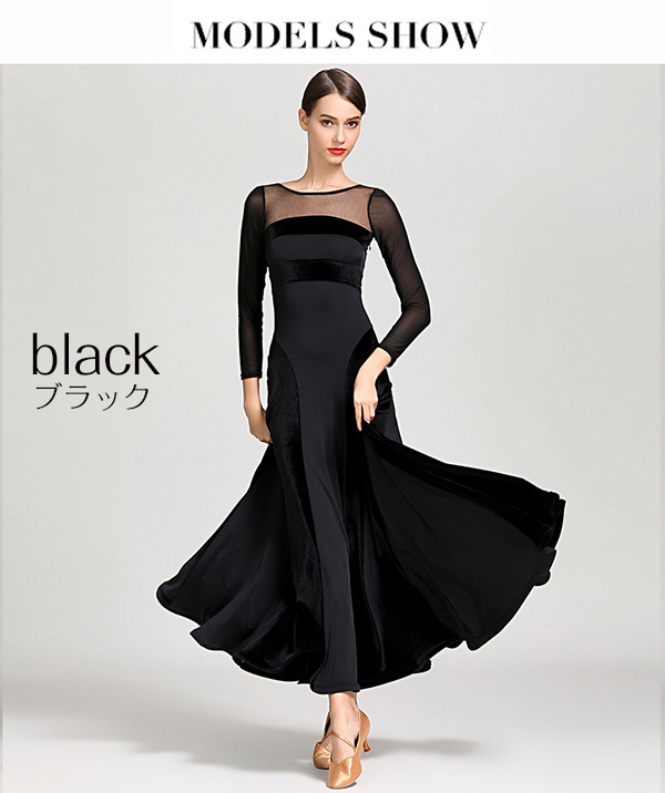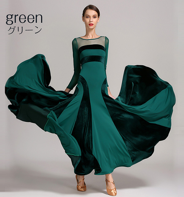 動画あり【楽天1位】高品質 社交ダンス ドレス 長袖 スタンダード 社交ダンス衣装 ワンピース 黒 広がる裾 ワンピース スタンダード レッスン着 発表会 競技着 練習着 演出用 スタンダード ワルツ専用ドレス ロング丈 オールシーズン黒 緑 赤 s m l xl 2xl 3L