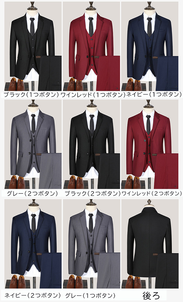 カラー: ブラック(1つボタン) グレー(1つボタン) ネイビー(1つボタン) ワインレッド(1つボタン) ブラック(2つボタン) グレー(2つボタン) ネイビー(2つボタン) ワインレッド(2つボタン)