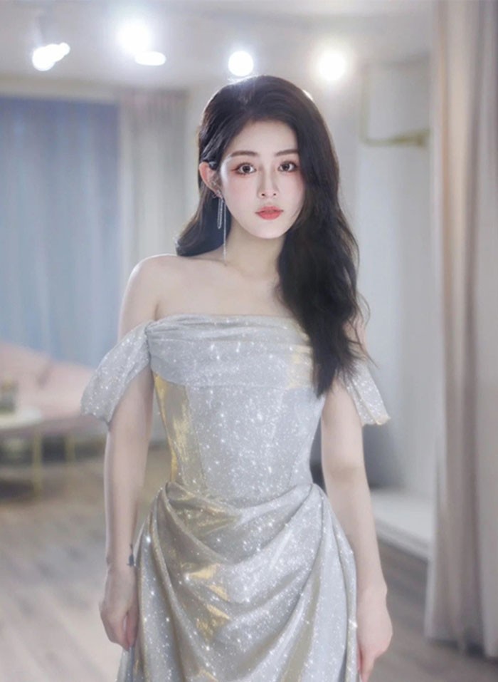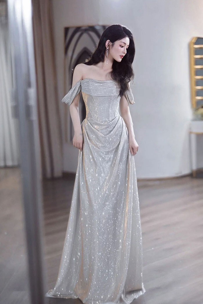 キラキラ ドレス 大人 袖付き ワンピ