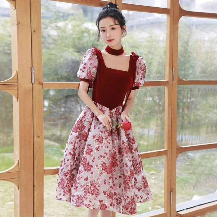 ドレス 大人 袖付き ワンピース 半袖