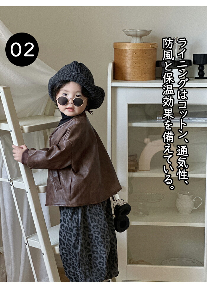 検索関連キーワード(商品の説明ではありません):子供服 ノーカラー フェイクレザー ライダースジャケット PUレザージャケット キッズ コート 韓国ファッション 革ジャン 女の子 男の子 ギャルズ ボーイズ 防風 保温 長袖 春秋 通園 通学 おしゃれ かっこいい シンプル カジュアル