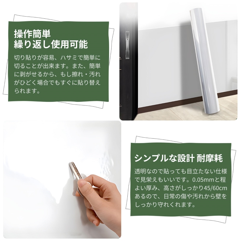 キズや汚れから壁を守る 手軽なはがせる保護シート 60cm×10m 60cm×5m 45cm×10m 45cm×5m 新生活