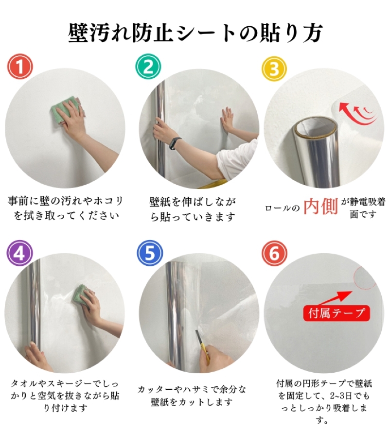 商品詳細商品名 壁保護シートサイズ 60cm×10m、60cm×5m、45cm×10m、45cm×5m素材 ポリプロピレン(PP)生産国 MADE IN PRC