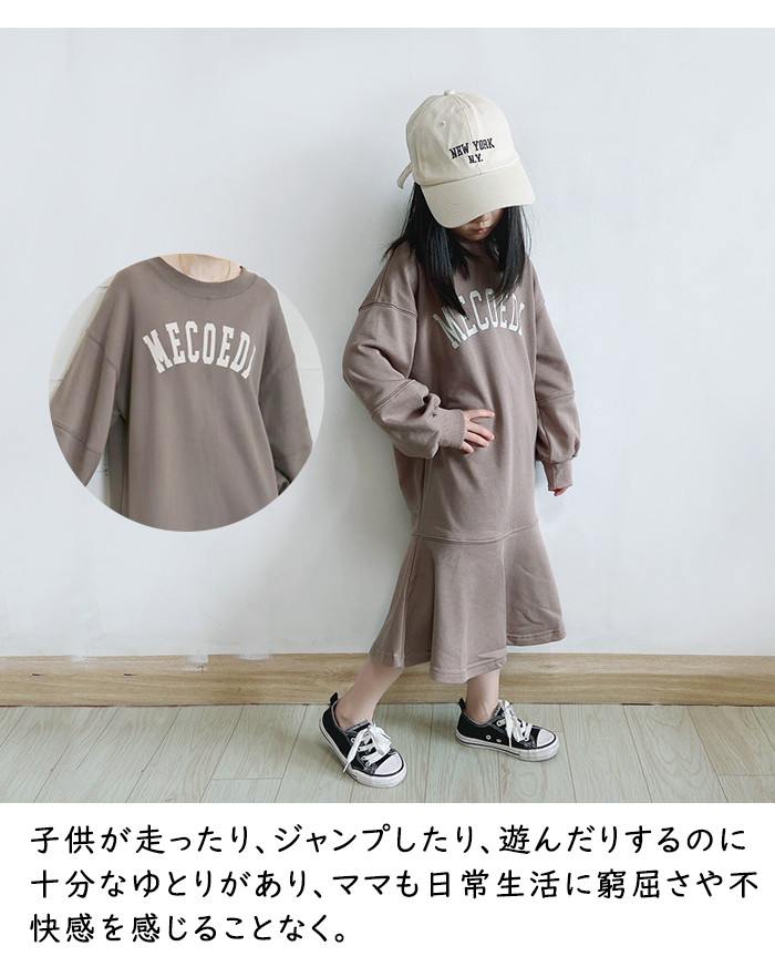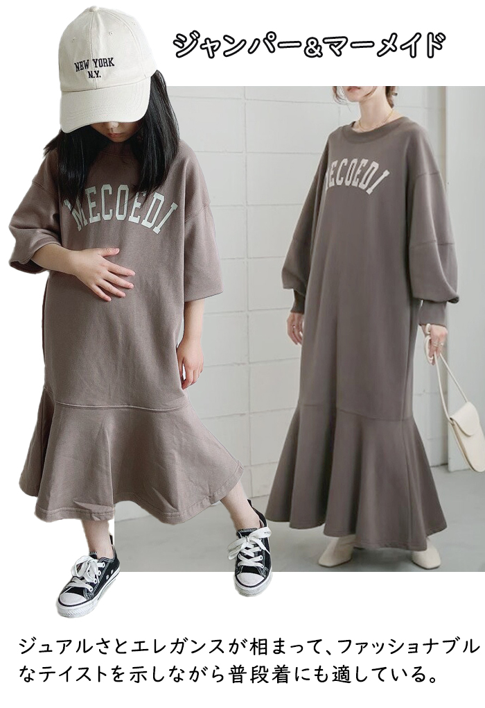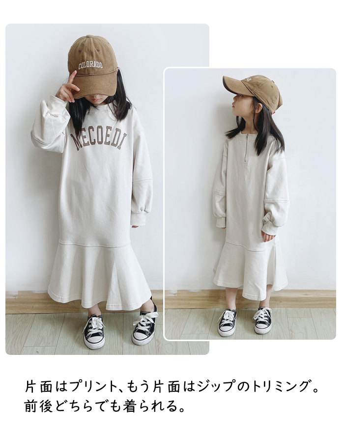 商品名:マーメイド 前後両面用 親子服 親子お揃い 子供服 ロングパーカー スウェットワンピース 女の子 キッズ 韓国風 通気 プリント ジッパー飾り 春秋冬 ペアルック ナチュラル オシャレ シンプル きれいめ キレイ かわいい 大人っぽい 幼稚園 保育園 小学校 通園 通学 おでかけ