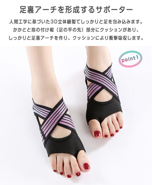 ヨガソックス 外反母趾 足裏アーチ サポーター 靴下 偏平足 ストレッチ 筋トレ バレエ 足袋 足の甲 スリッパ サンダル グラデーション履物 5本指 つま先なし かかと 扁平足 土踏まず