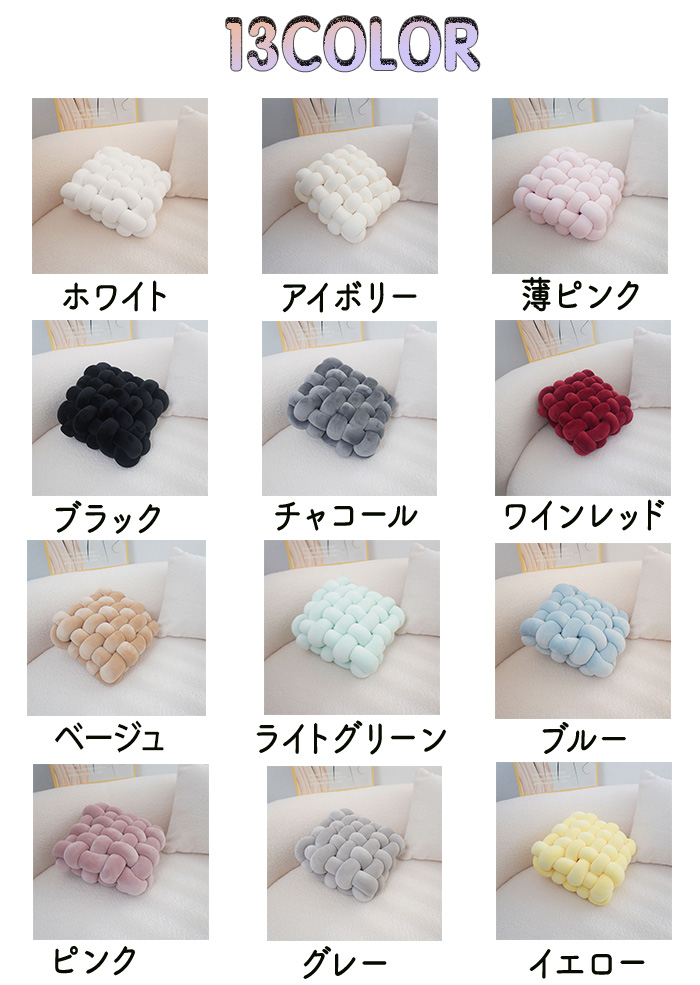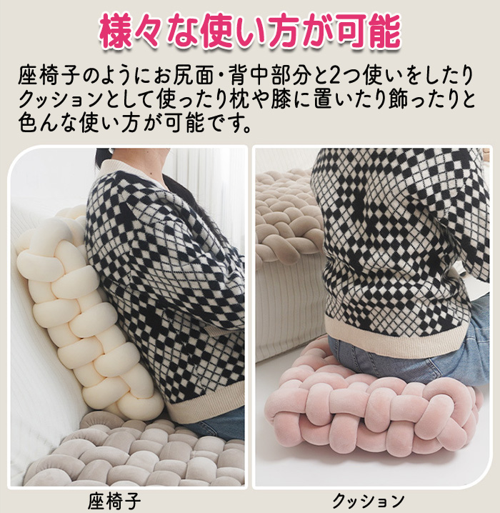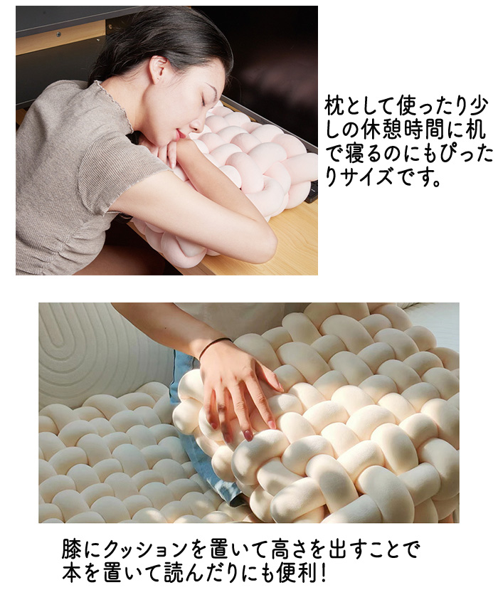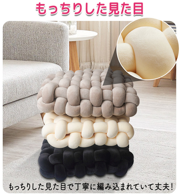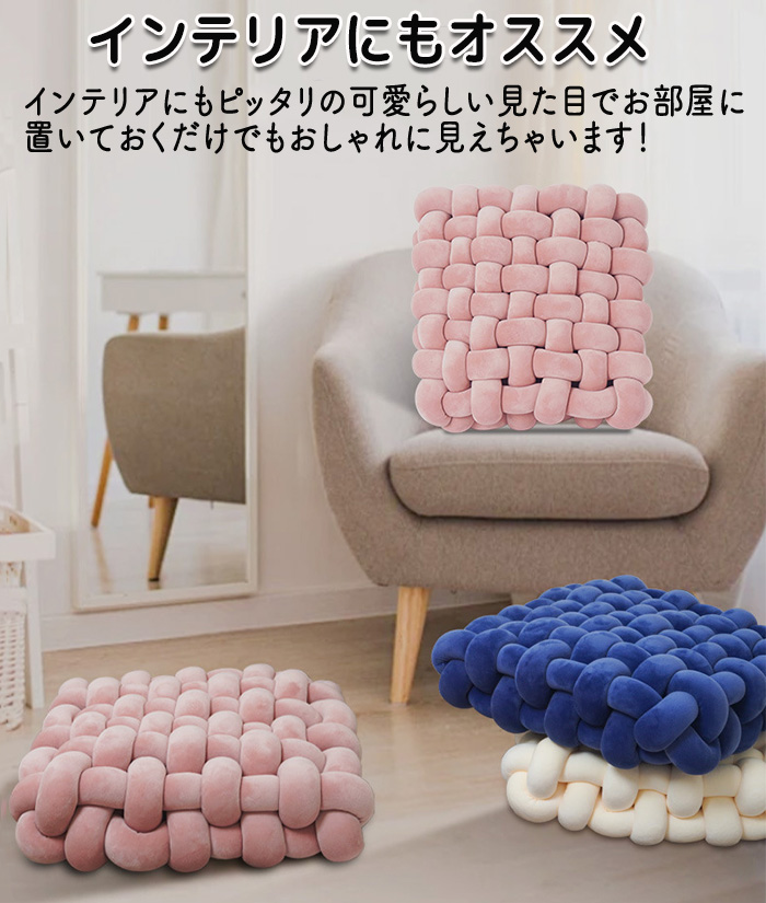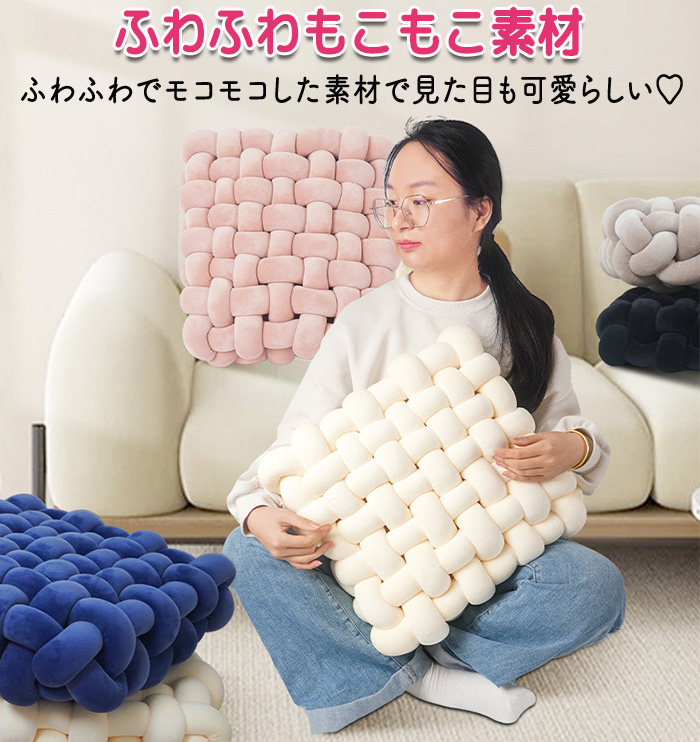 商品名:座布団 手編み座布団 クッション 手編みクッション. コンパクトクッション 四角 四角クッション かわいい ふわふわ 結び目クッション チャンキーニットクッション ホームインテリア インテリア 膝置き 手芸 ソファー椅子 枕 背もたれ 座椅子 北欧 シンプル ナチュラル オフフィス 在宅ワーク ソファークッション