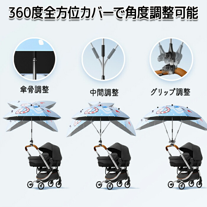 傘 ベビーカー 専用 パラソル 日除け 晴雨兼用 角度調節360° 旅行 お出かけ 日傘 8本骨 uvカット 紫外線対策 日焼け対策 キッズ ベビー 軽量 丈夫 撥水加工 防風 雨傘 遮光 シンプル