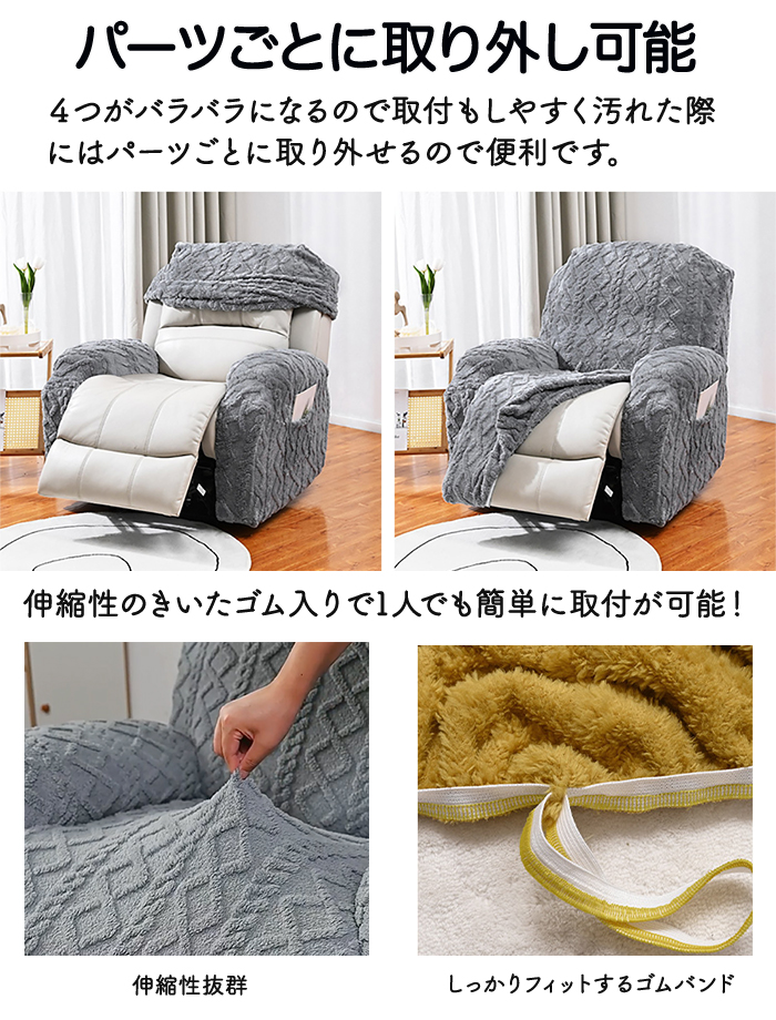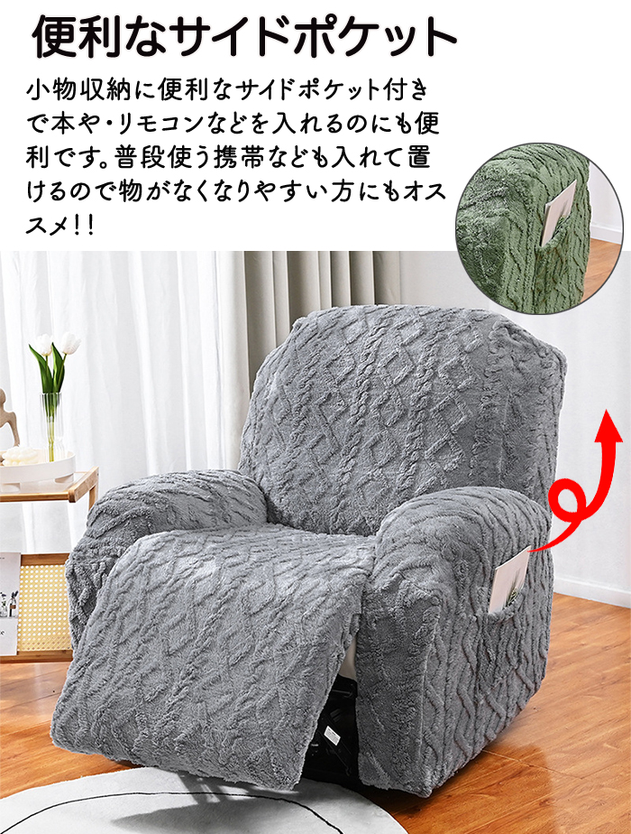 マッサージチェア カバー リクライニングチェアカバー もこもこデザイン 汚れ防止 洗濯可能 伸縮性抜群 パーツごとに取り外し可能 シンプルなデザイン ずれにくい サイドポケット