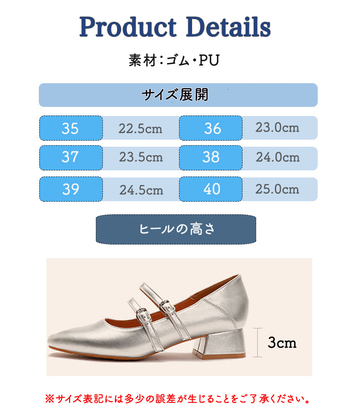 3cmの太ヒールで安定感抜群!ヒール初心者・苦手な方にも安心して履いていただけます。