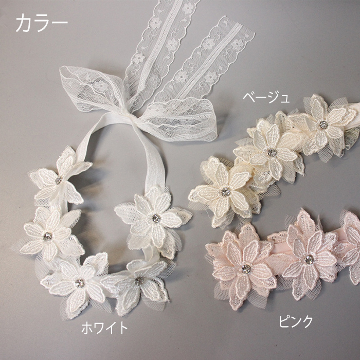 商品名:ベビー ヘアバンド ベビーヘアバンド ヘッドバンド 赤ちゃん 新生児 髪飾り レース 花 リボン お宮参り 花冠 花かんむり 写真 写真撮影 記念写真 パーティー 和装 洋装 白 ホワイト 記念日 撮影 出産祝い 和装 内祝い 入園祝い 女の子 コスチューム 100日祝いお食い初め キッズハーフバースデー 子供 初節句 手作り