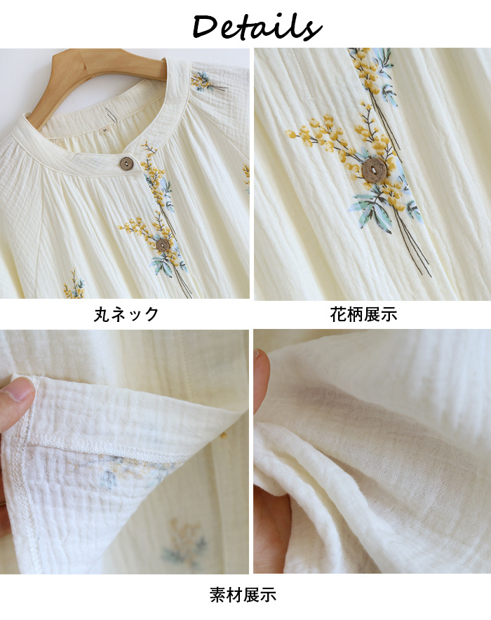 パジャマ レディース 花柄 丸ネック