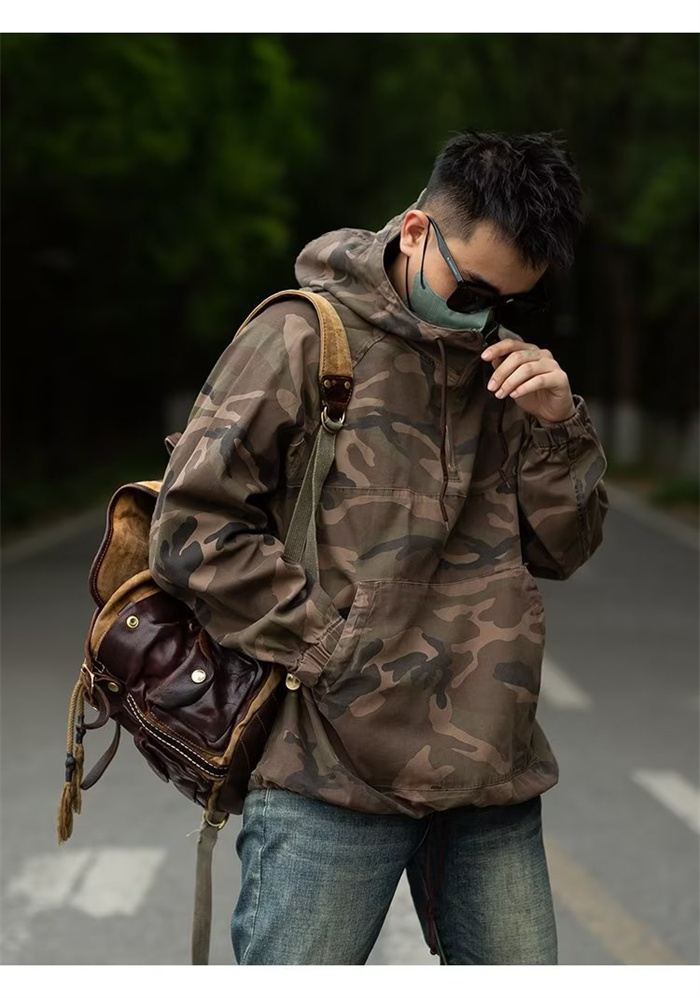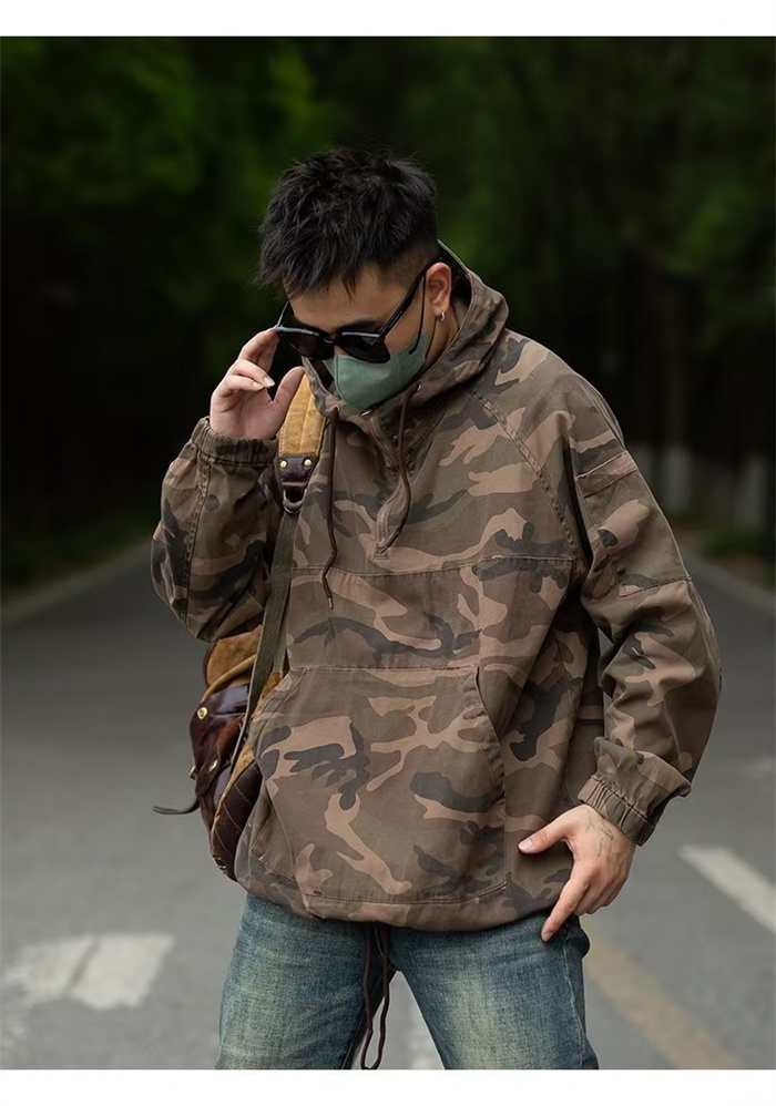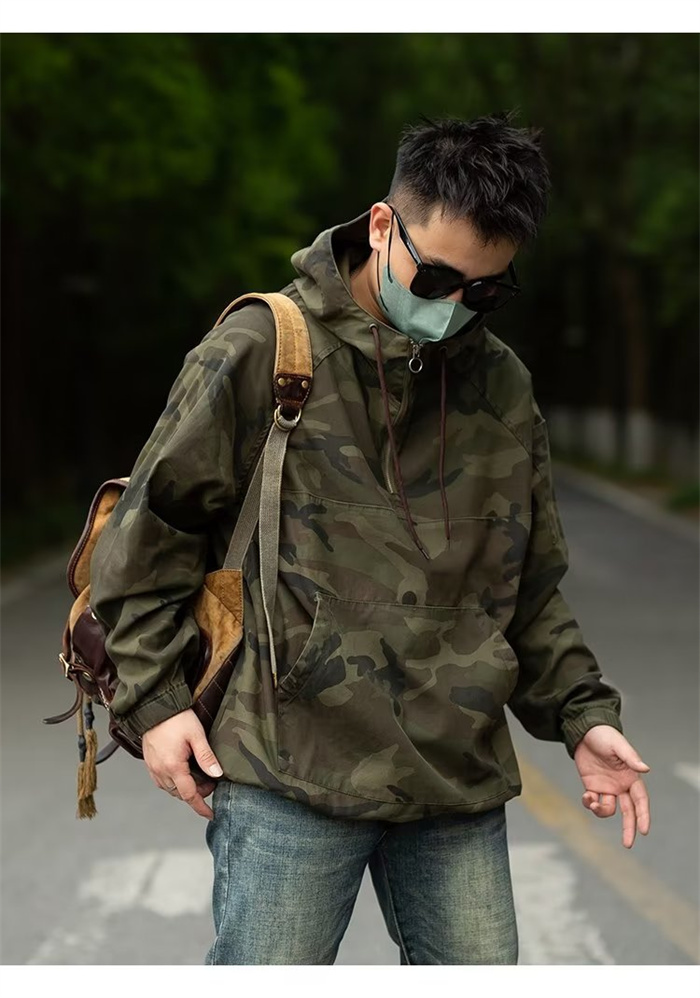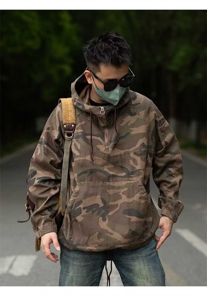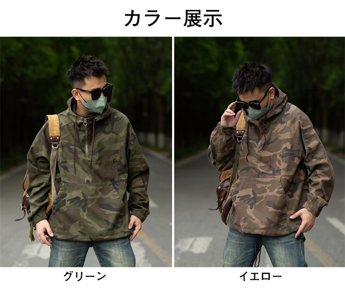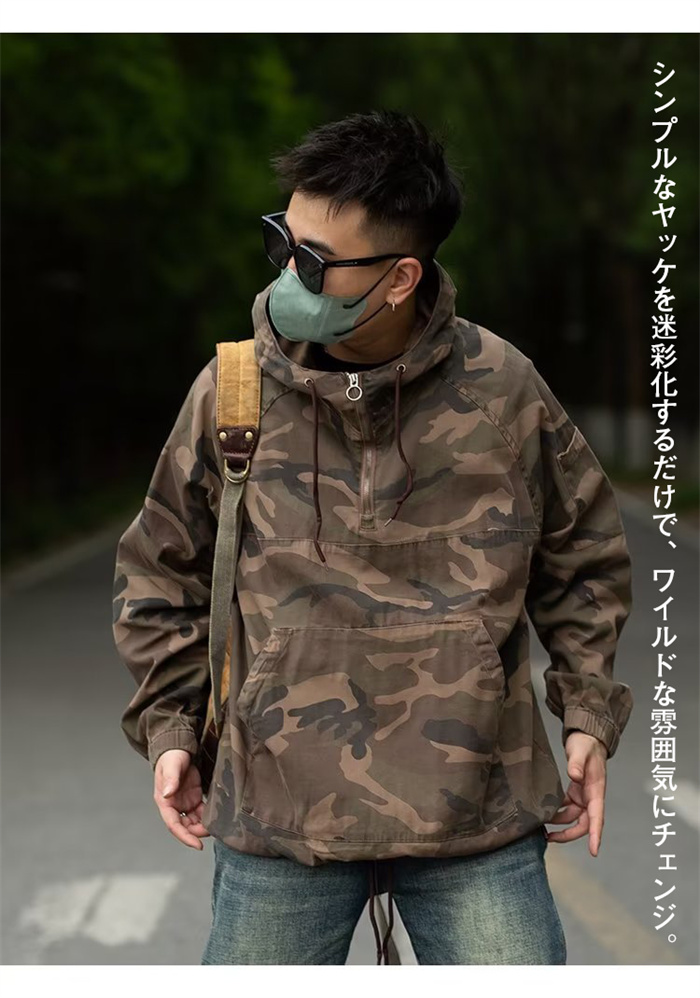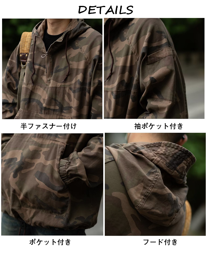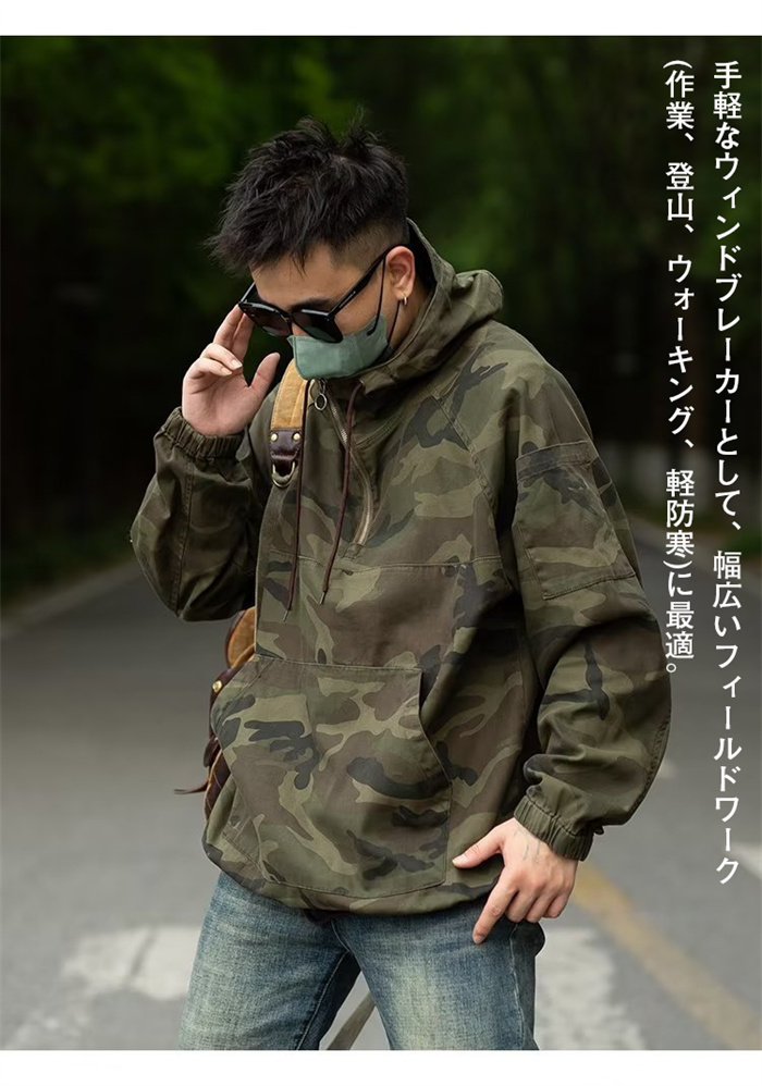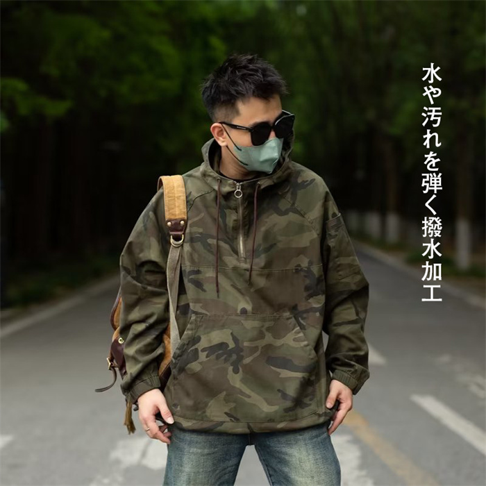 迷彩ジャケット 撥水加工 メンズ 迷彩 上着 プルオーバー 半ファスナー ポーチ付 アウトドア 作業 M-3XL