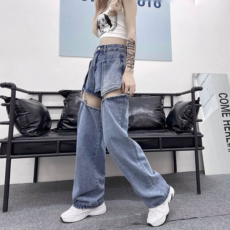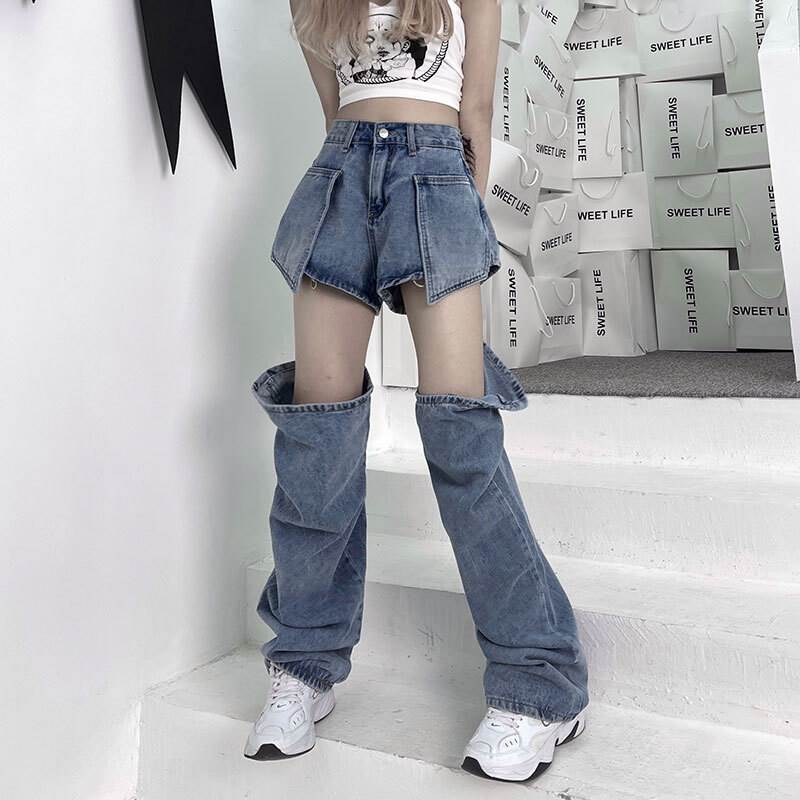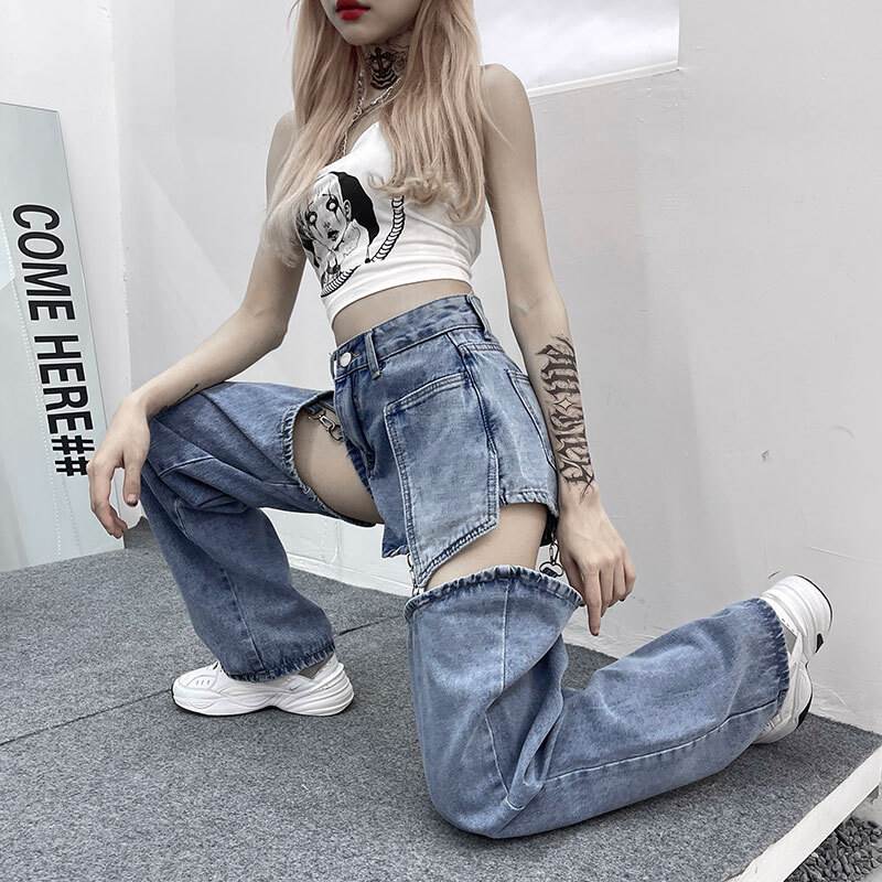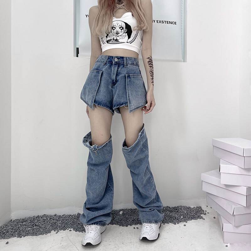 デニムパンツ ビジュー付き