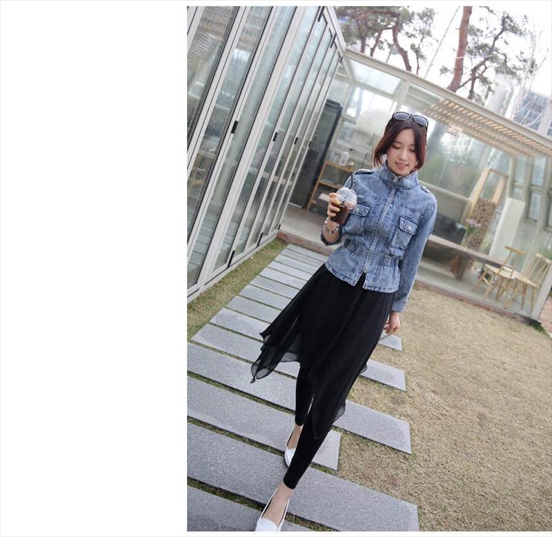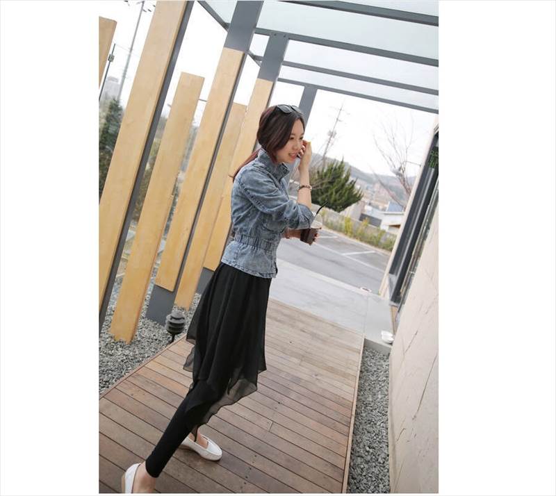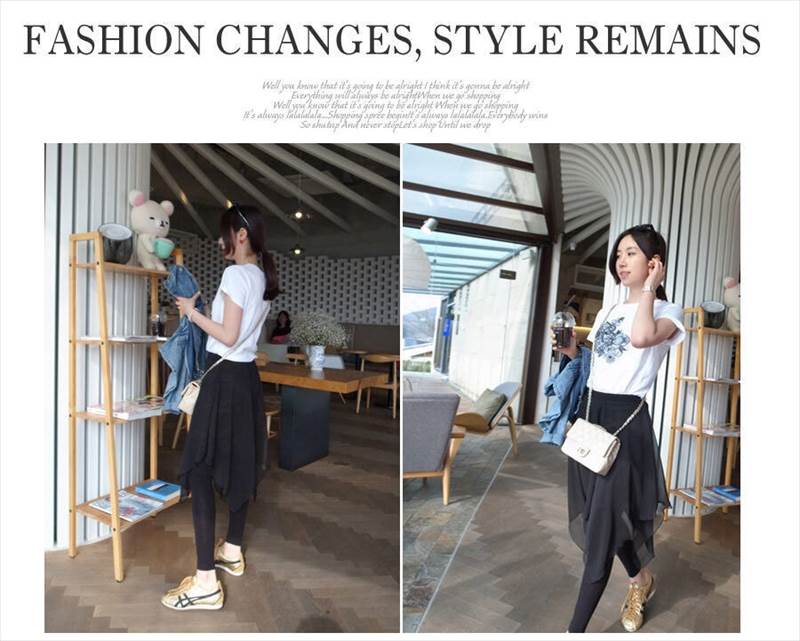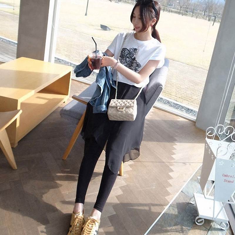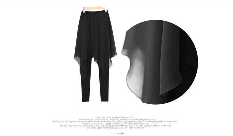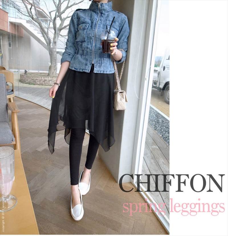 上品なシフォンスカートが付いたレギンスパンツ。