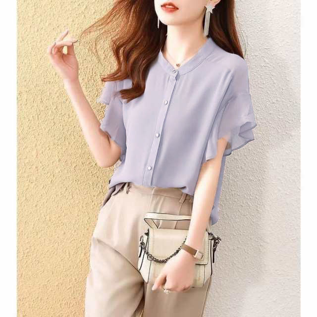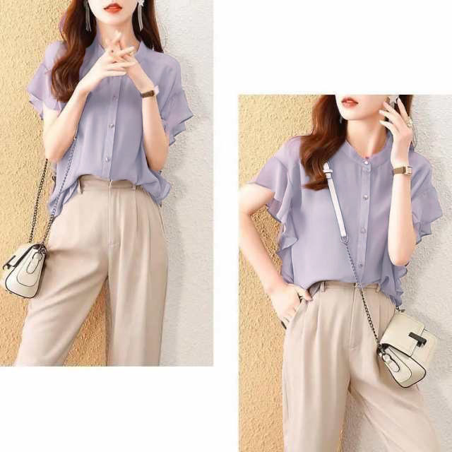 ブラウス レディース 夏 半袖 シフォ