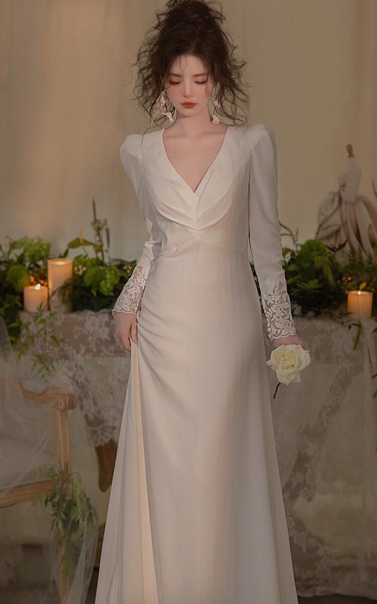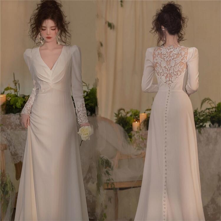 ホワイト ウェディングドレスAライン長
