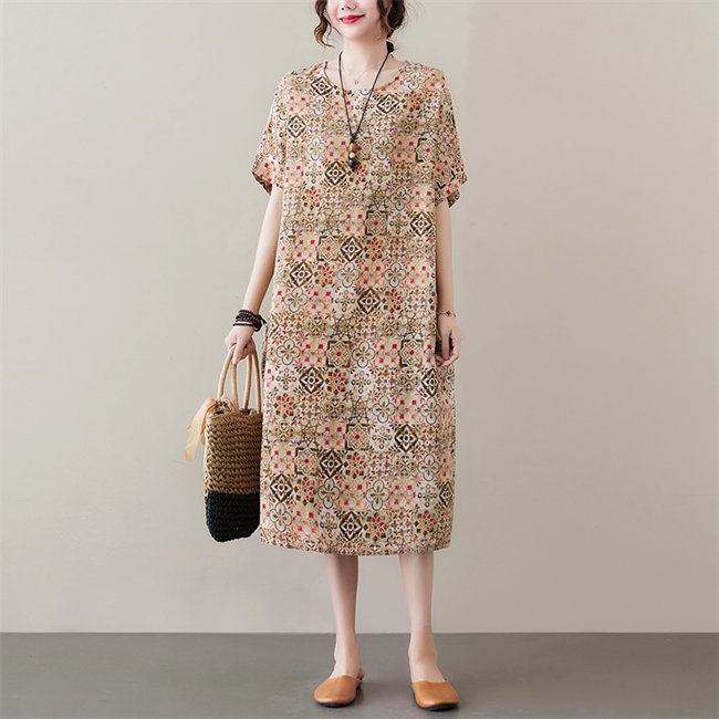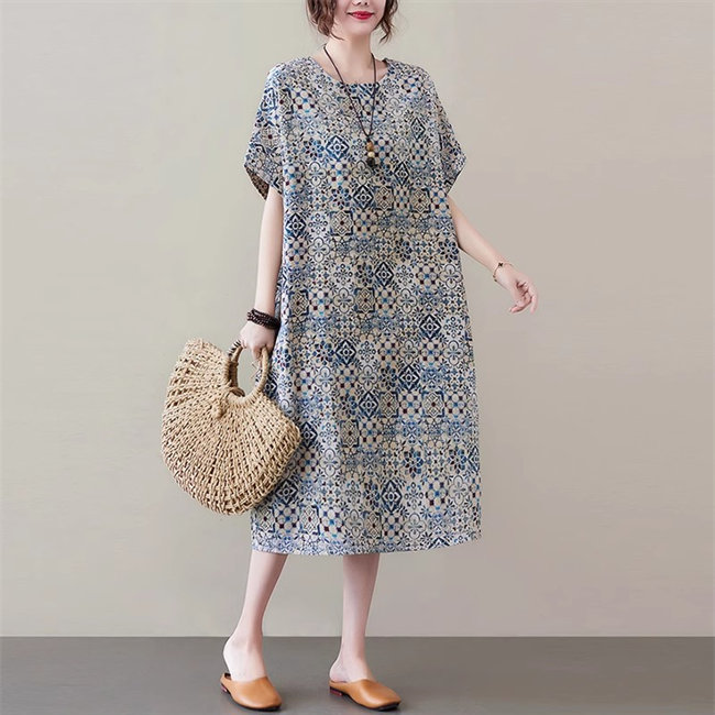 ブルー ブラウンレディースロングワンピ