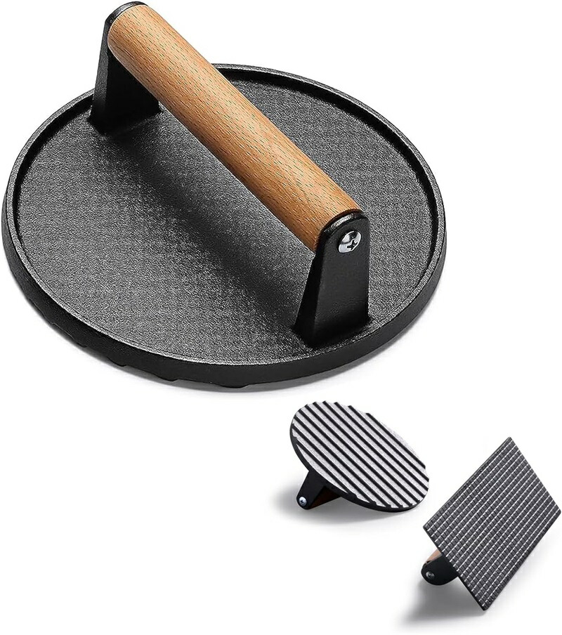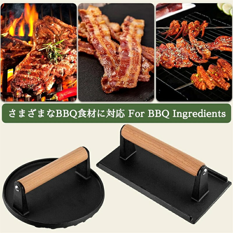 【使いやすさとお手入れが簡単】: 円形と長方形の両方の鋳鉄 ミートプレスは、ほとんどのスキレット、フライパン、グリル、グリルパンに適合します。