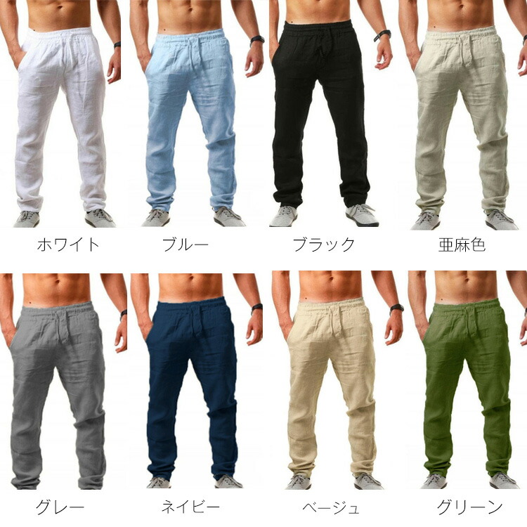 ※寸法は平置きにて計測し、若干の誤差がある場合がございます。色 ホワイト、 ブルー、ブラック 、亜麻色、グレー 、 ネイビー 、ベージュ、グリーン商品内容 リネンパンツ1枚