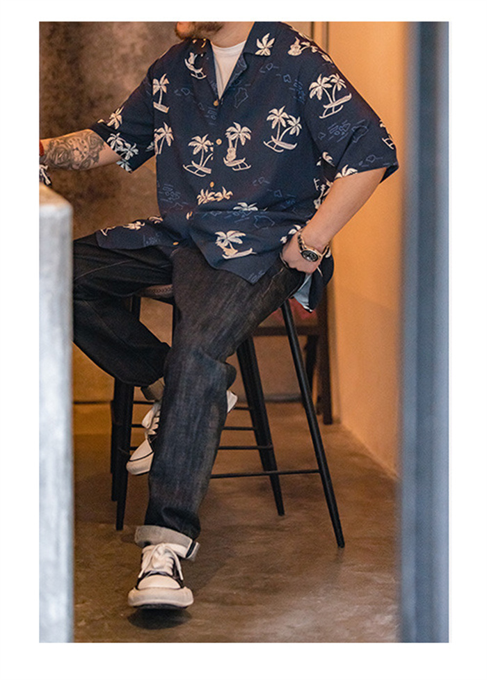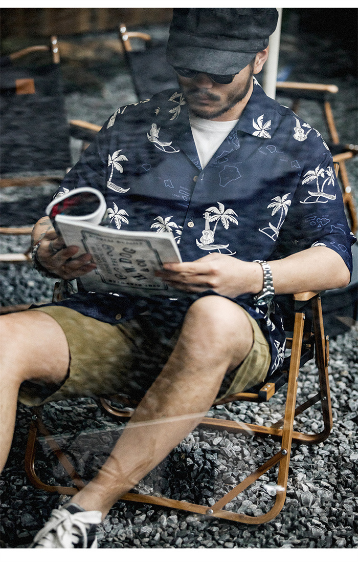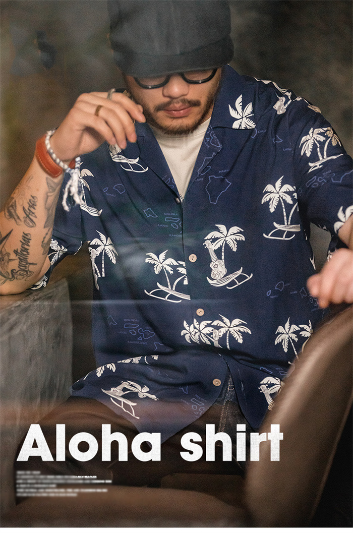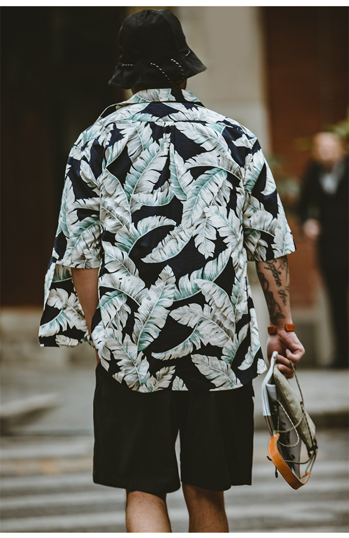 horizontal-key: ネイビー ブラックバナナの葉 ブラックパイナップル