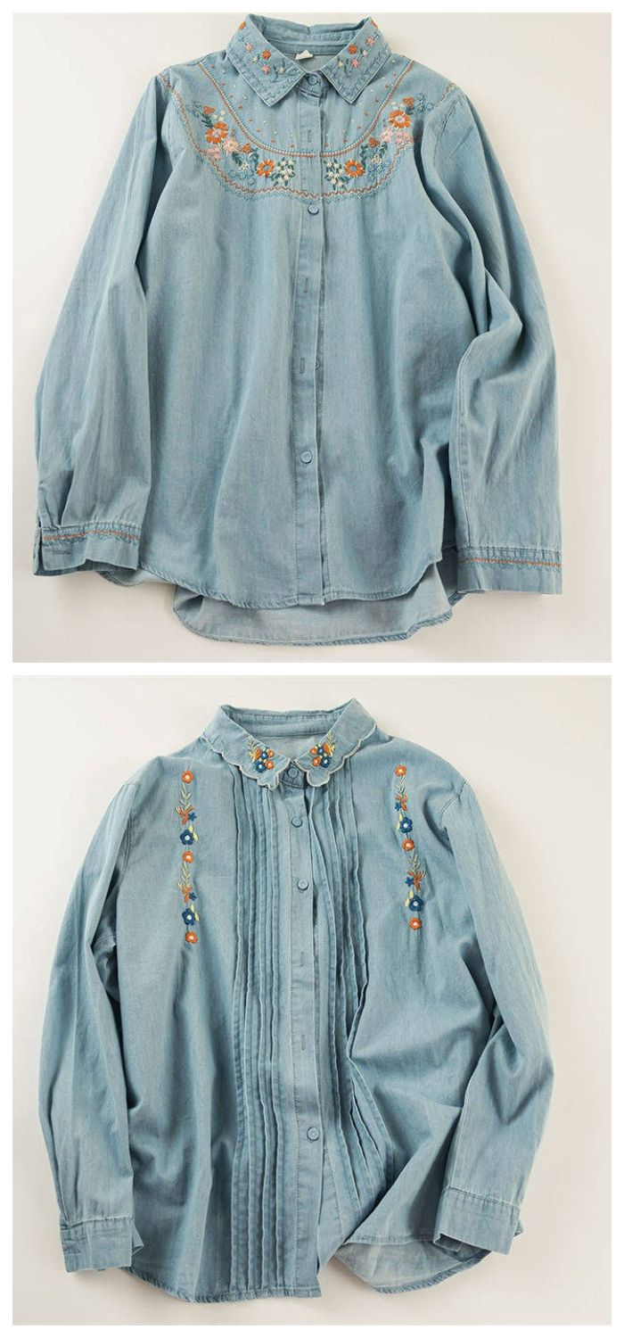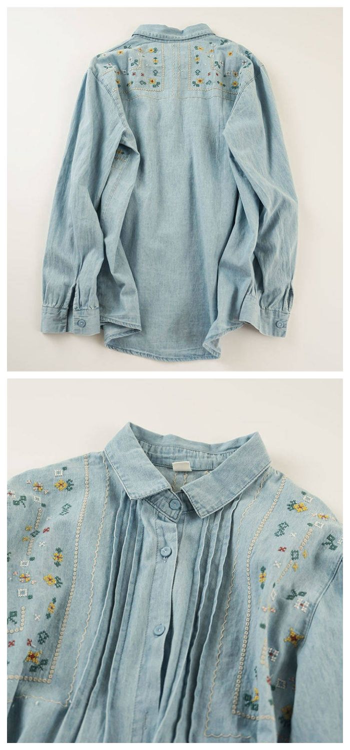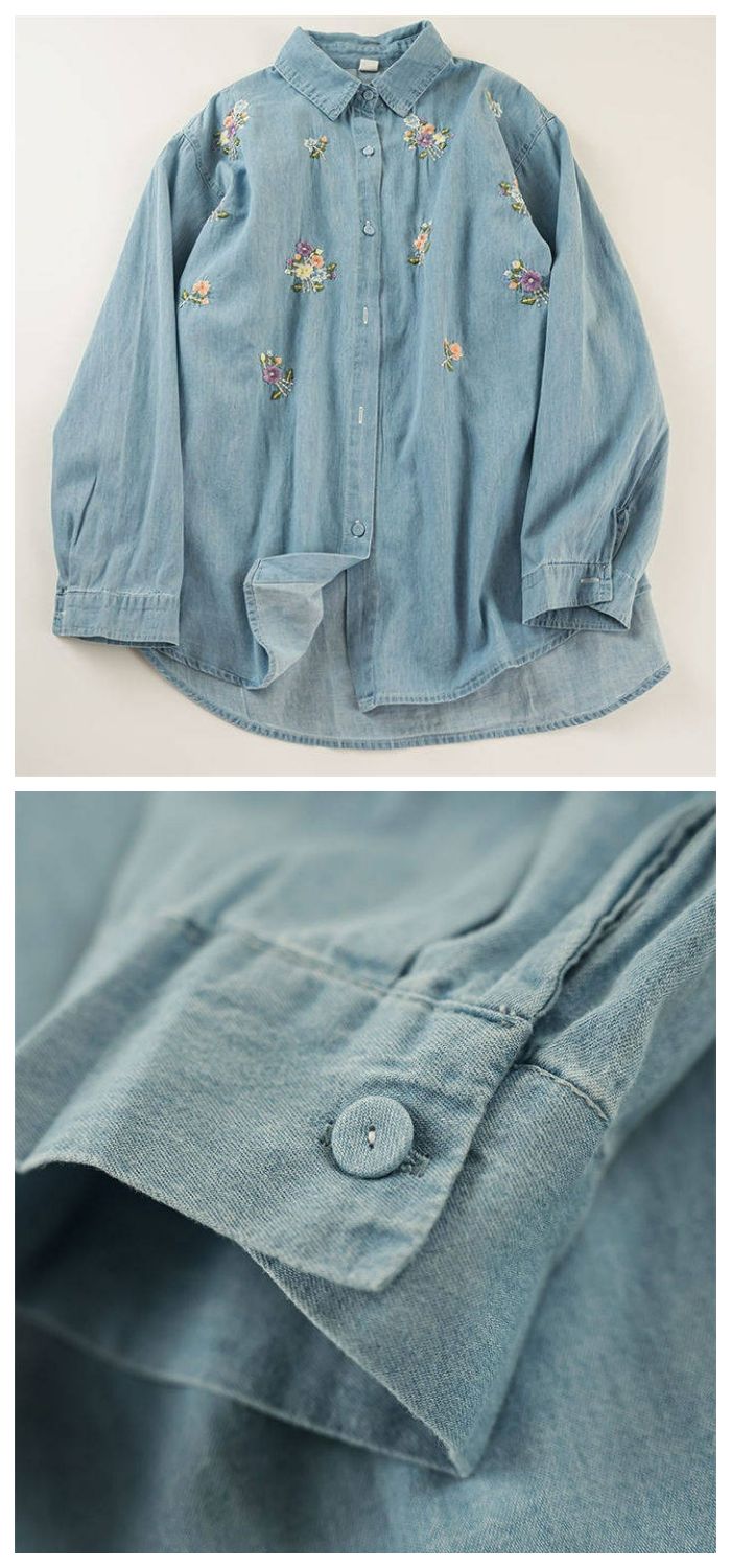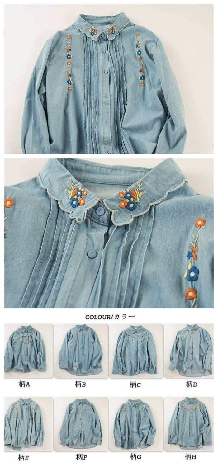 花柄刺繍デニムシャツ シャツ ブラウス