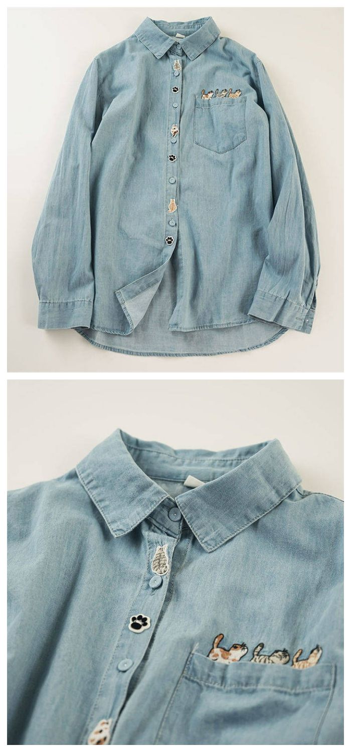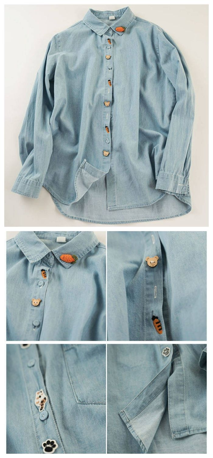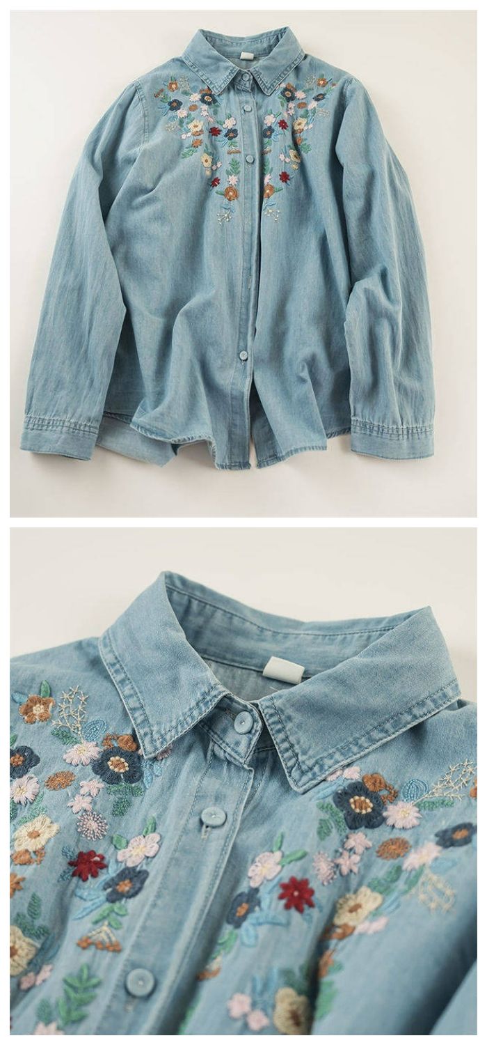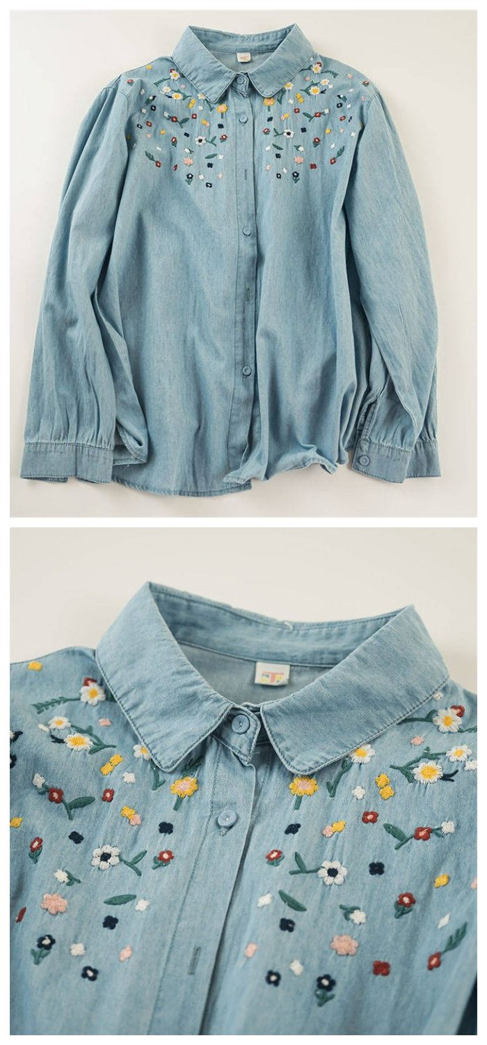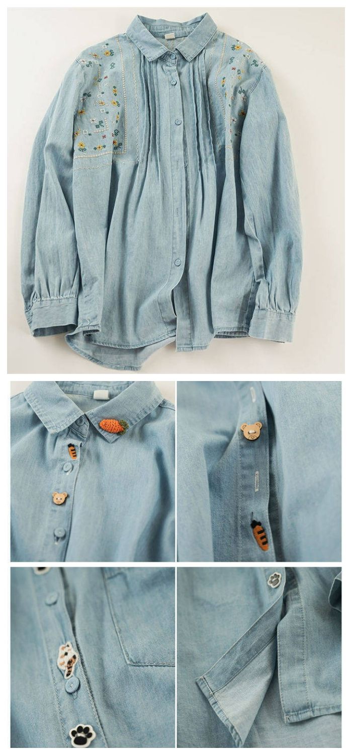 花柄刺繍デニムシャツ シャツ ブラウス