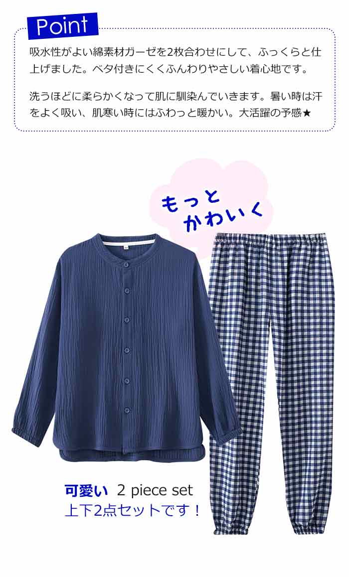 入院ダブルガーゼ パジャマ 男性グレー