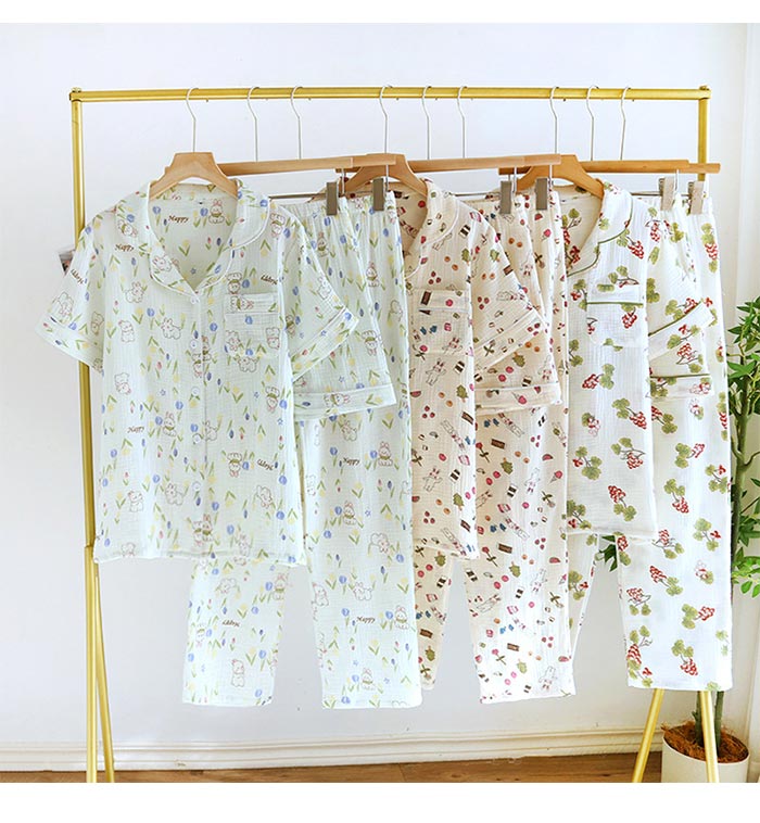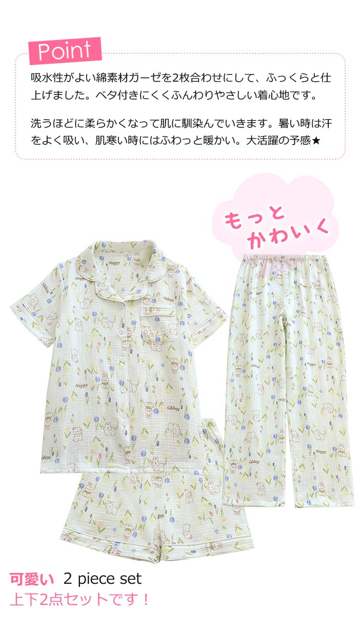 綿長袖長ズボン可愛い前開きダブルガーゼ