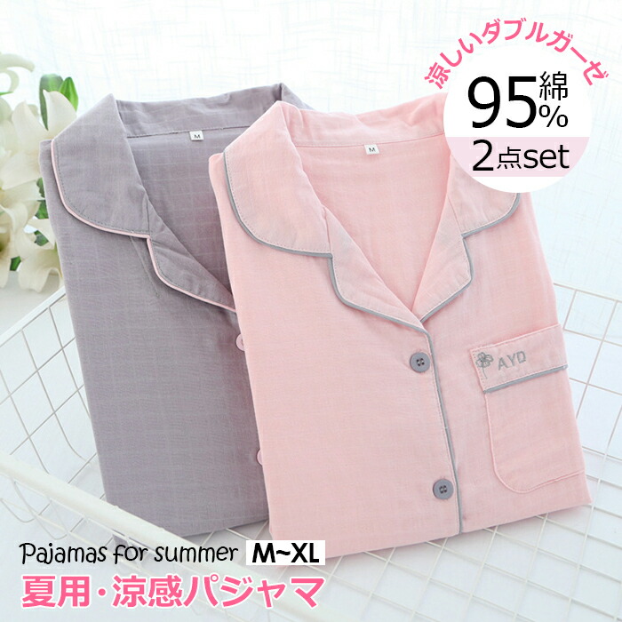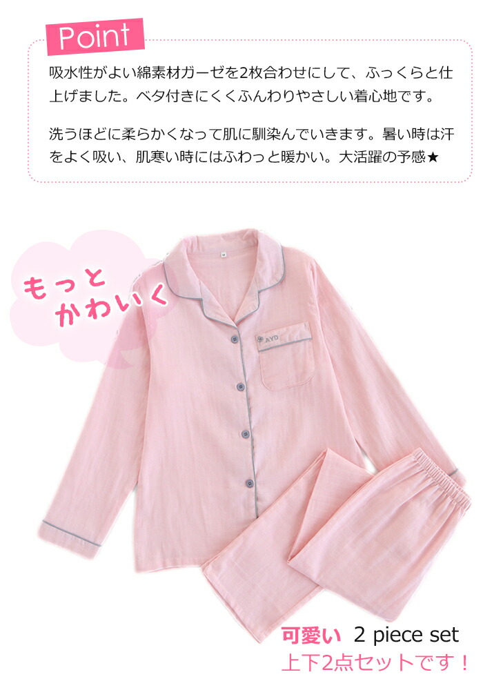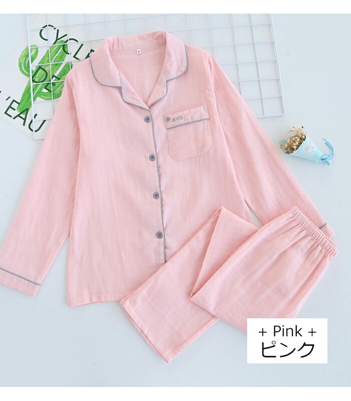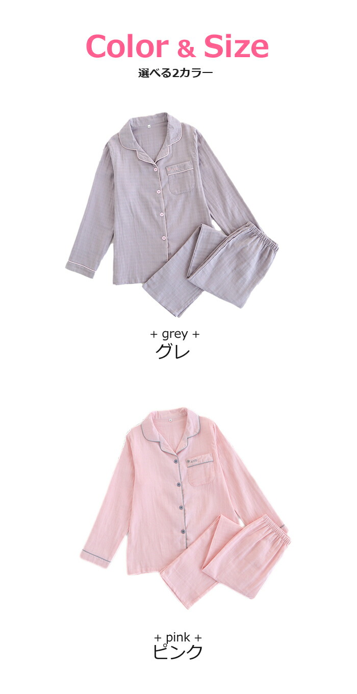 【100円OFFマラソン期間】レディース パジャマ 部屋着 前開き ルームウエア ナイトウエア ガーゼパジャマ 大人用 介護 部屋着 入院 産後 二重ガーゼ 綿100% 寝巻き 浴衣 夏 薄手 長袖 かわいい ピンク/グレー/M/L/XL 敬老の日
