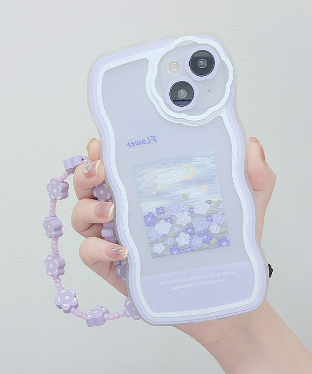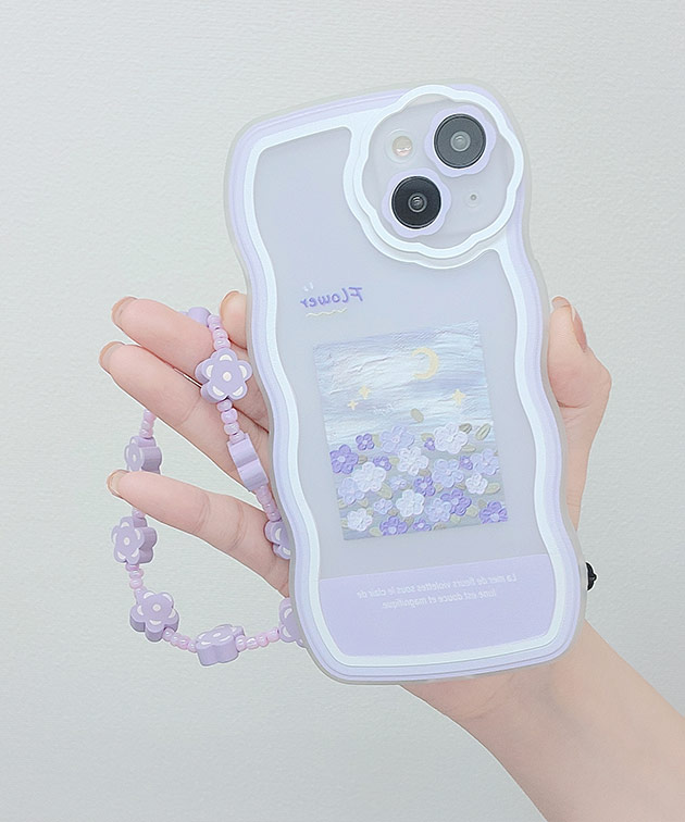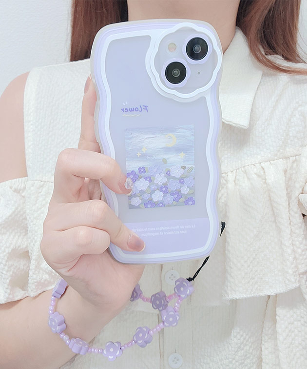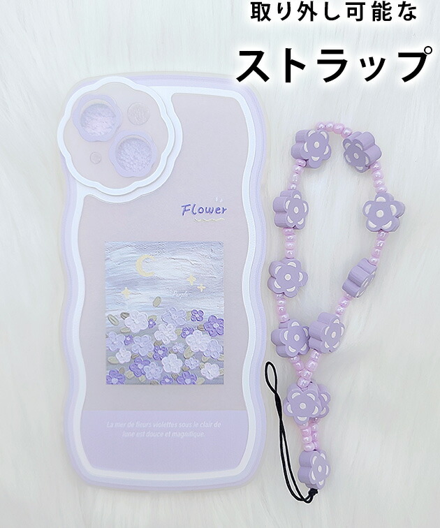 ウエーブライン バイカラー フラワー iPhone ケース 女性 レディース スマホ カバー アクセサリー 立体 ストラップ 花 配色 イラスト もこもこ 可愛い キュート 華やか ギフト マカロン