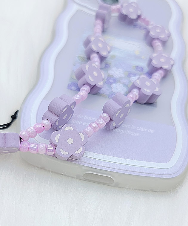 花モチーフを繋げたストラップ付きで、見失いがちなバッグの中でも主張をしてくれるのがうれしいところ。