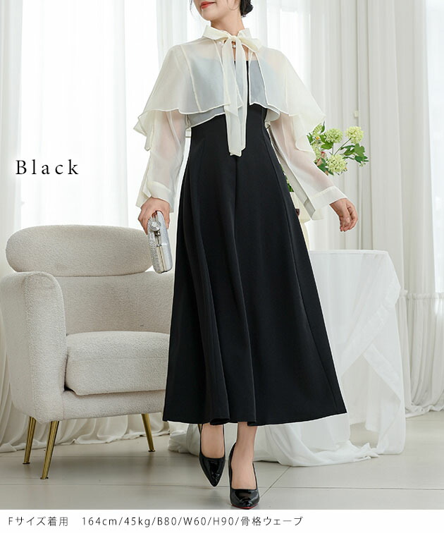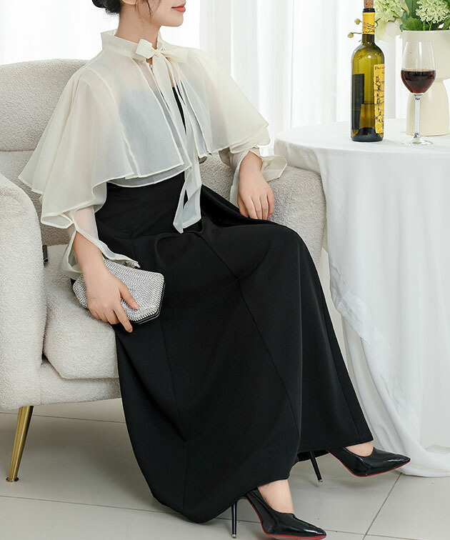 セットでお使いいただけるボレロは、トレンドのシアー素材をセレクト。
