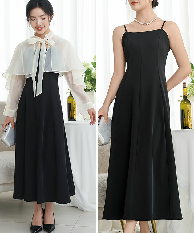 シンプルなキャミワンピースとシアーボレロの2ピースセット。