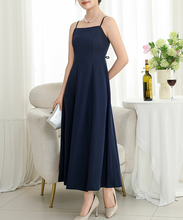 ボレロ付き バック レースアップ キャミソール ワンピース 女性 レディース ドレス ノースリーブ 春 夏 秋 冬 ロング マキシ 単色 無地 シンプル ミニマル スマート Aライン フレアスカート