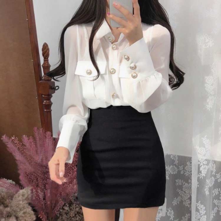 シフォンブラウス シアーブラウス ボリューム袖