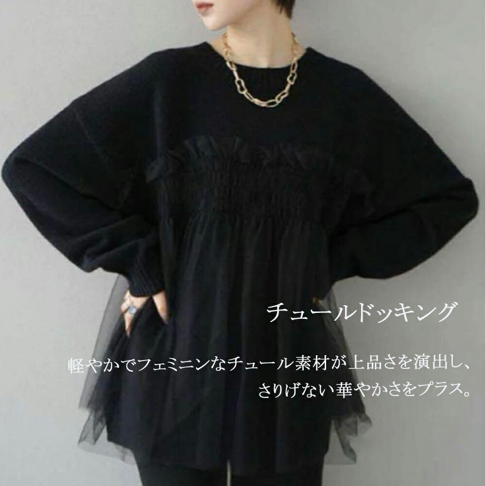 セーター 秋冬 ロングスリーブ ミディ丈 チュニック ざっくり ふわもこ きれいめ 大人 可愛い 暖かい 通勤通学 ブラック ベージュ ブルー