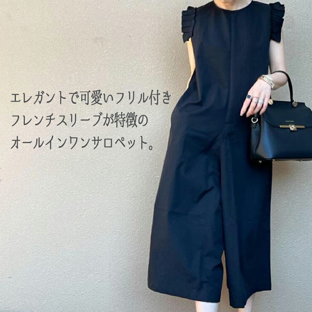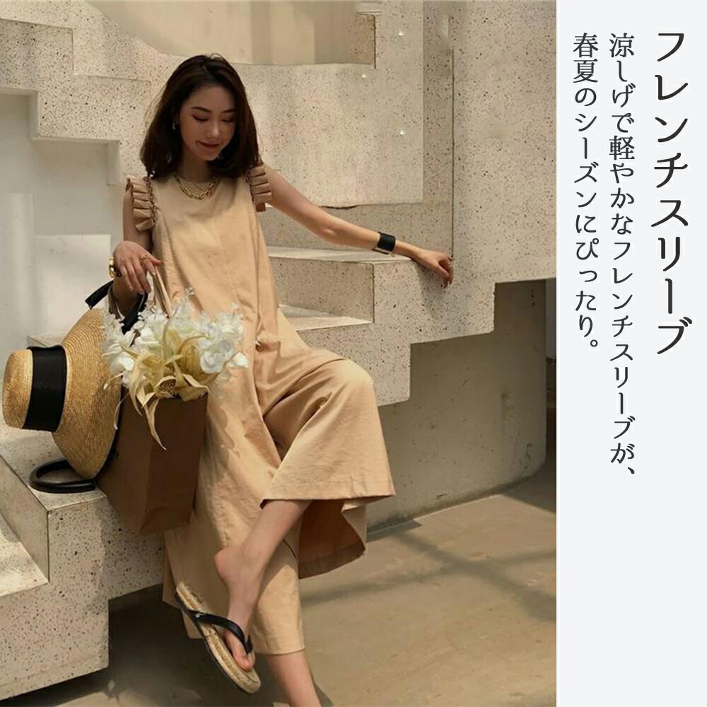 オールインワン フリル フレンチスリーブ サロペット レディース 服 パンツ フリル袖 ポケット ファスナー リゾート ラッフル 肩 ノースリーブ 体型カバー 楽ちん きれいめ 可愛い おしゃれ 春夏 春 夏 20代 30代 40代 50代