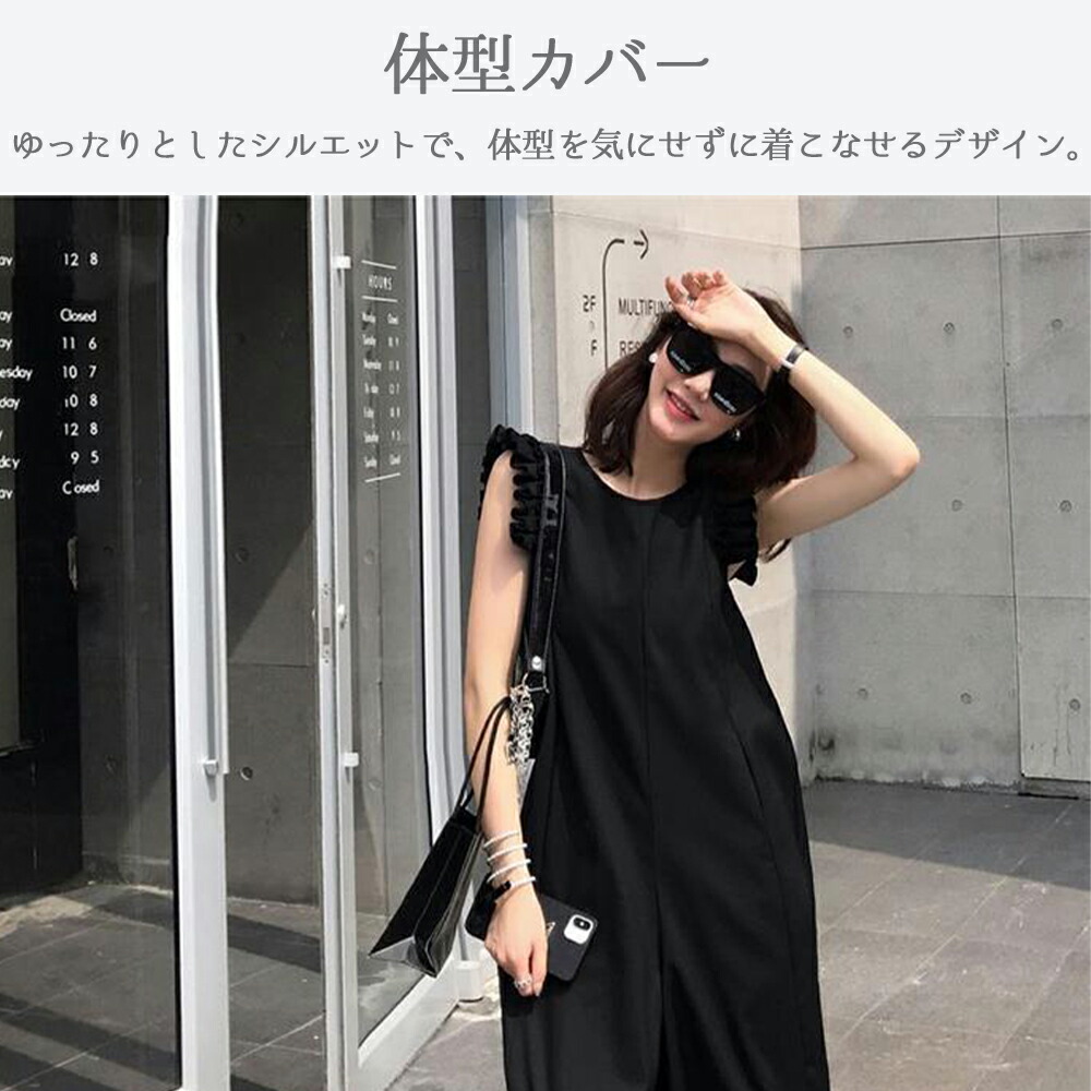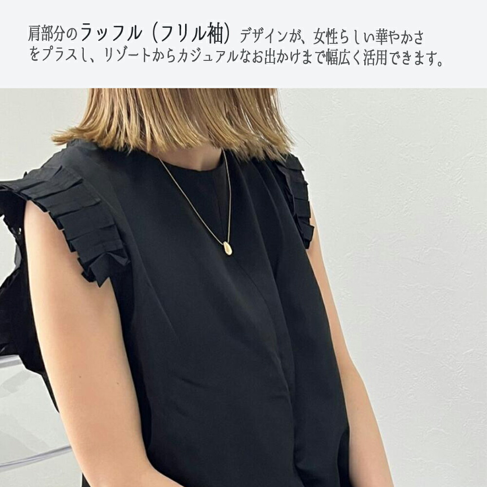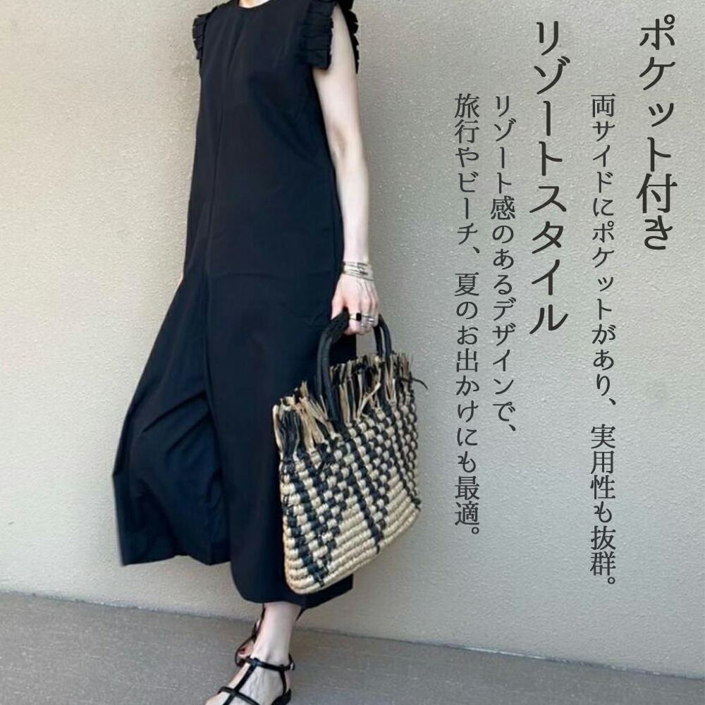 オールインワン フリル フレンチスリーブ サロペット レディース 服 パンツ フリル袖 ポケット ファスナー リゾート ラッフル 肩 ノースリーブ 体型カバー 楽ちん きれいめ 可愛い おしゃれ 春夏 春 夏 20代 30代 40代 50代【品番】 fs2409a52【カラー】 ブラック / ベージュ【サイズ】