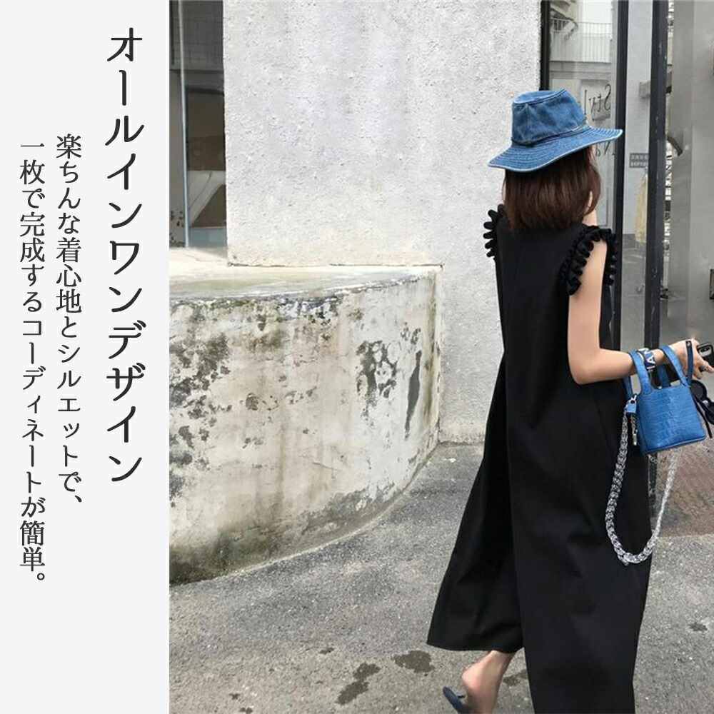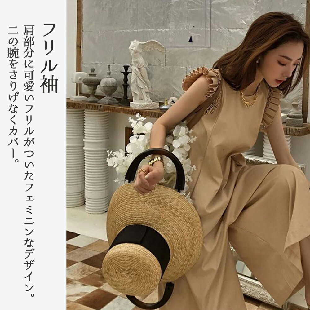 オールインワン フリル フレンチスリーブ サロペット レディース 服 パンツ フリル袖 ポケット ファスナー リゾート ラッフル 肩 ノースリーブ 体型カバー -
