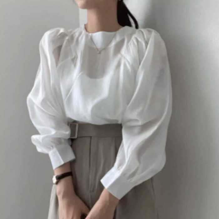 シフォンブラウス シアーブラウス ボリューム袖