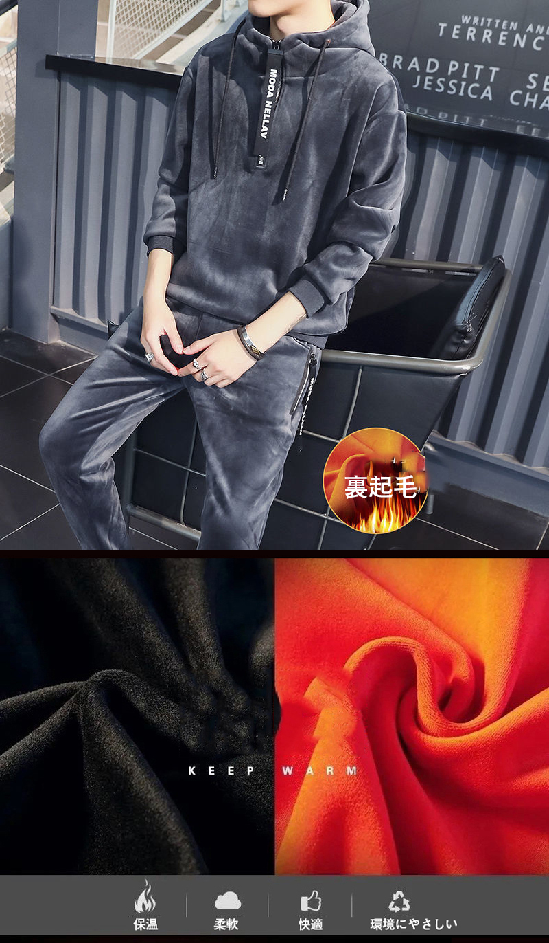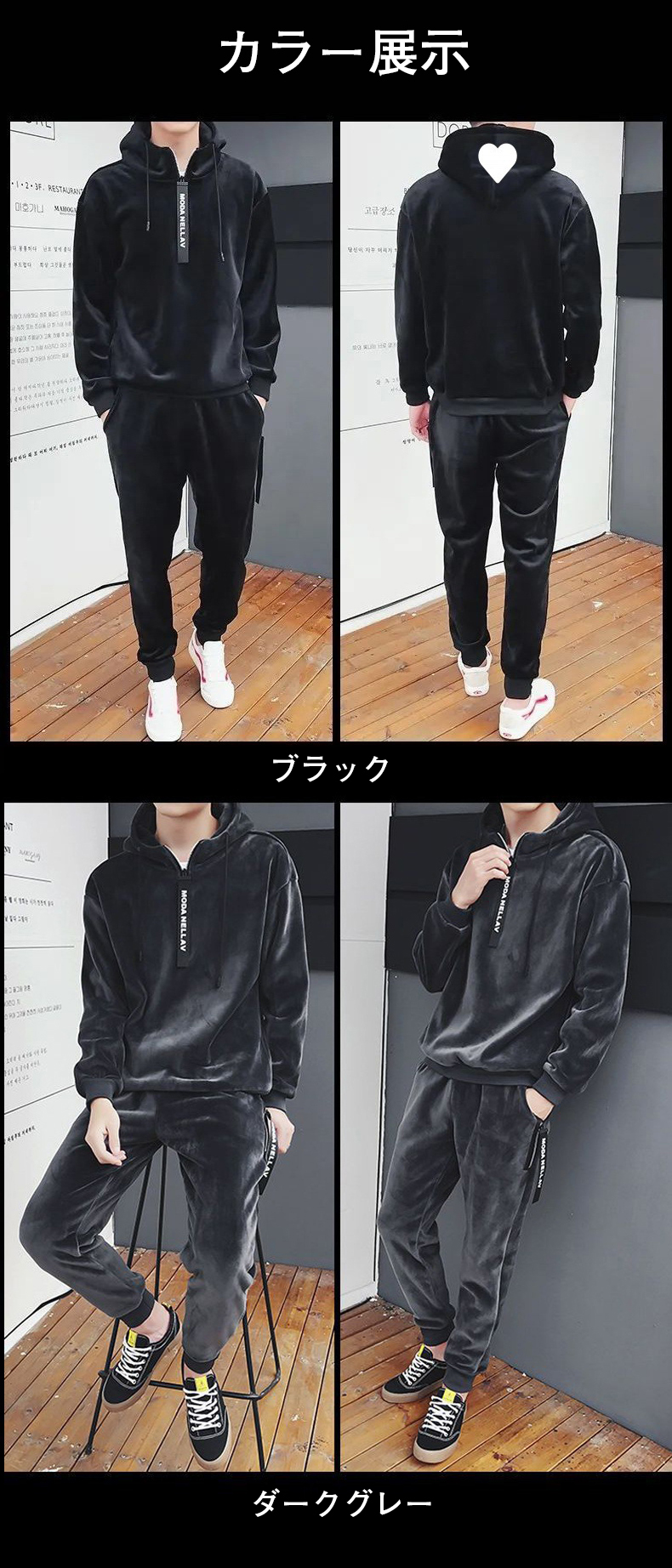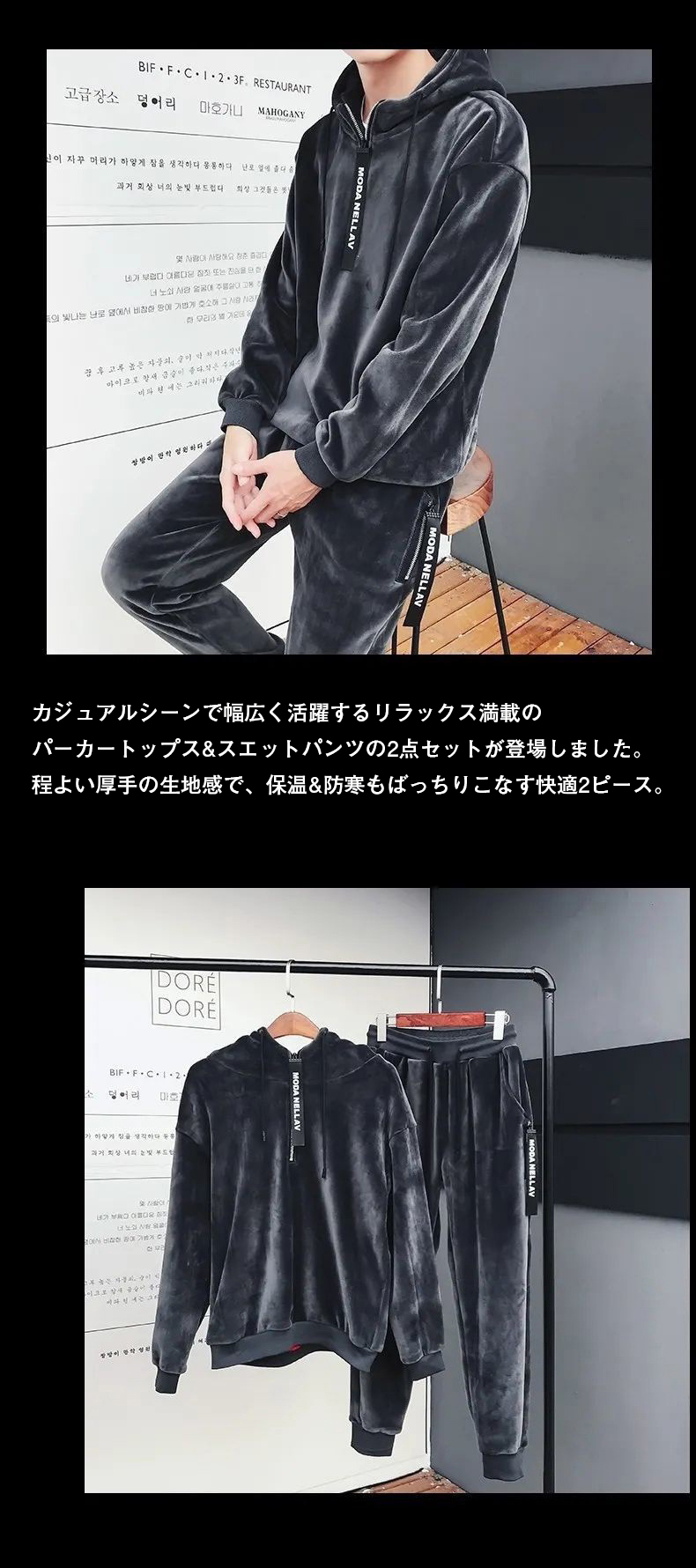 セットアップ ベロア 裏起毛 ジャージ 上下 スウェット トレーナー 厚手 長袖 秋冬 メンズ M~XL