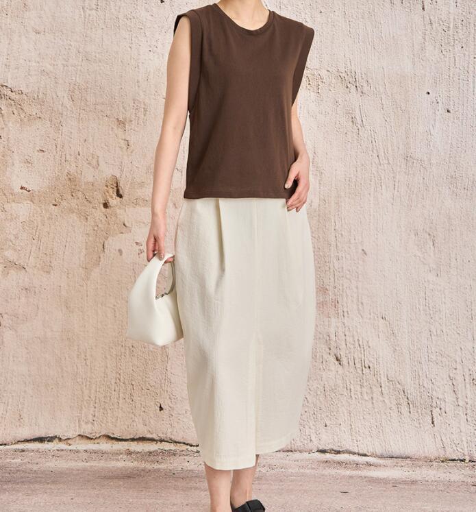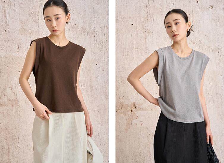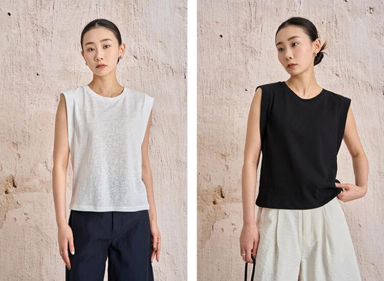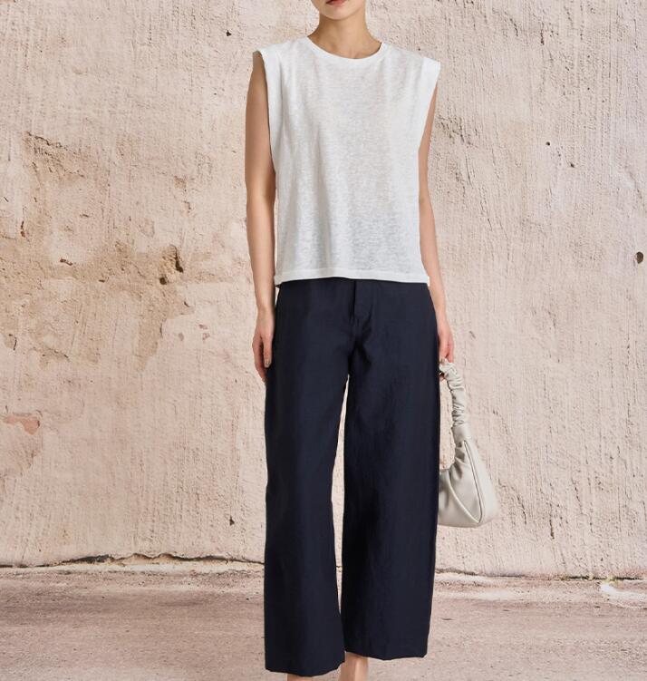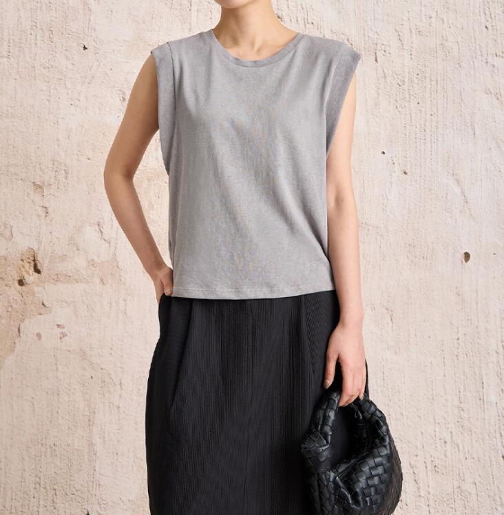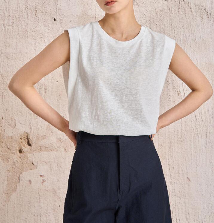無地タンクトップ レディース綿麻袖なし
